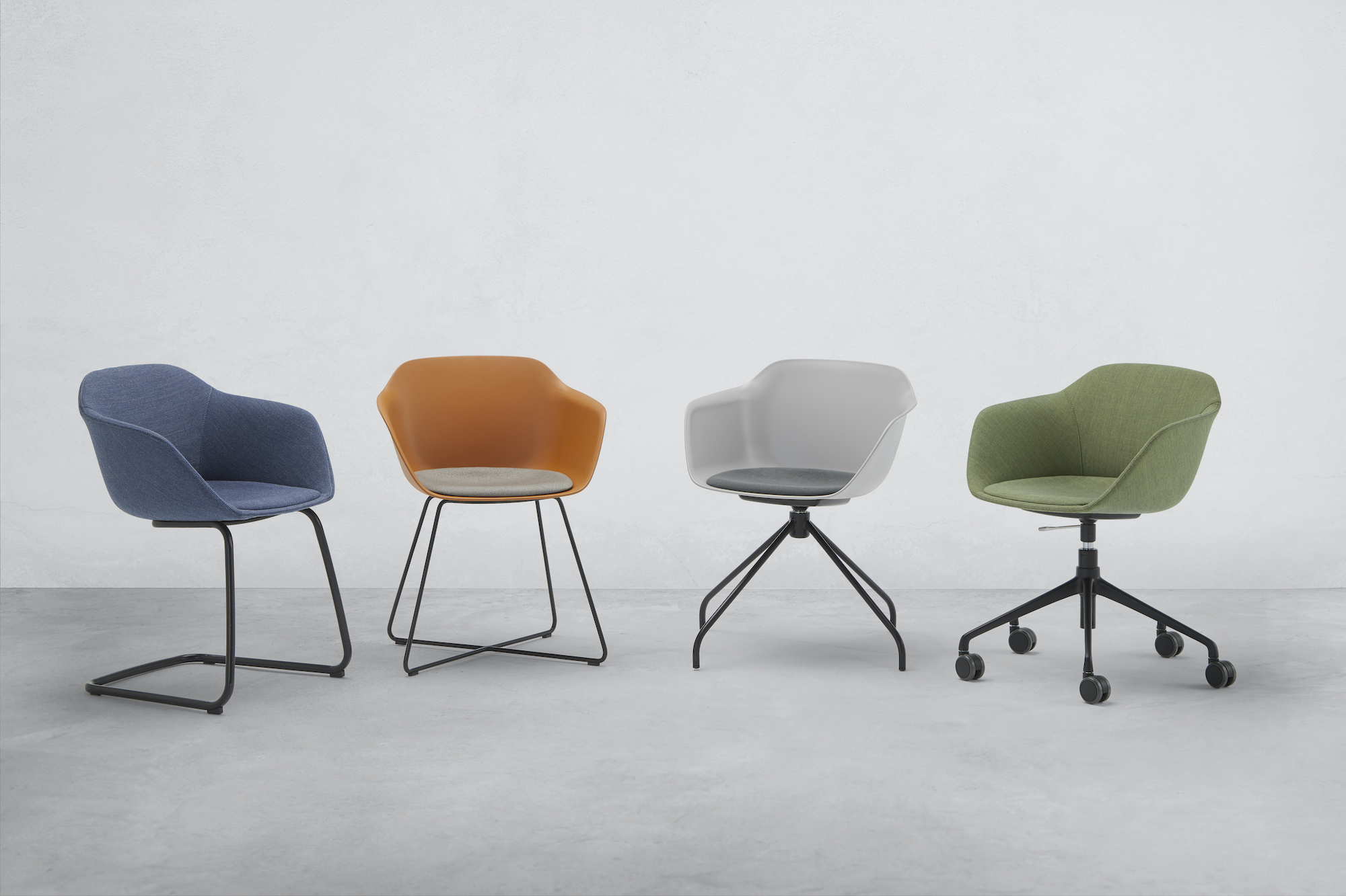 The extensive range of colours, upholstery options and the variety of base types available, offer the opportunity to create infinite design combinations to match the most diverse contexts and projects.