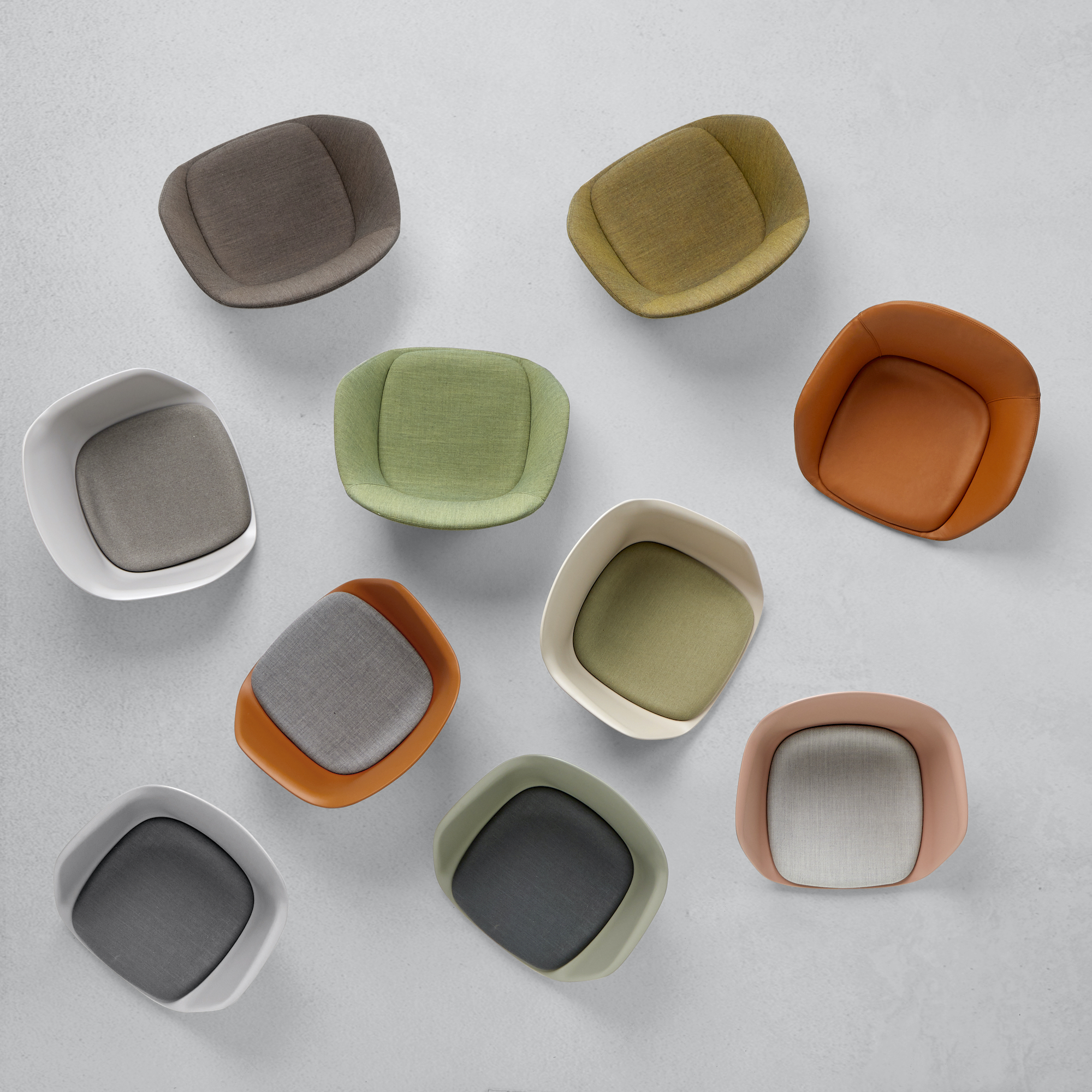 The extensive range of colours, upholstery options and the variety of base types available, offer the opportunity to create infinite design combinations to match the most diverse contexts and projects.