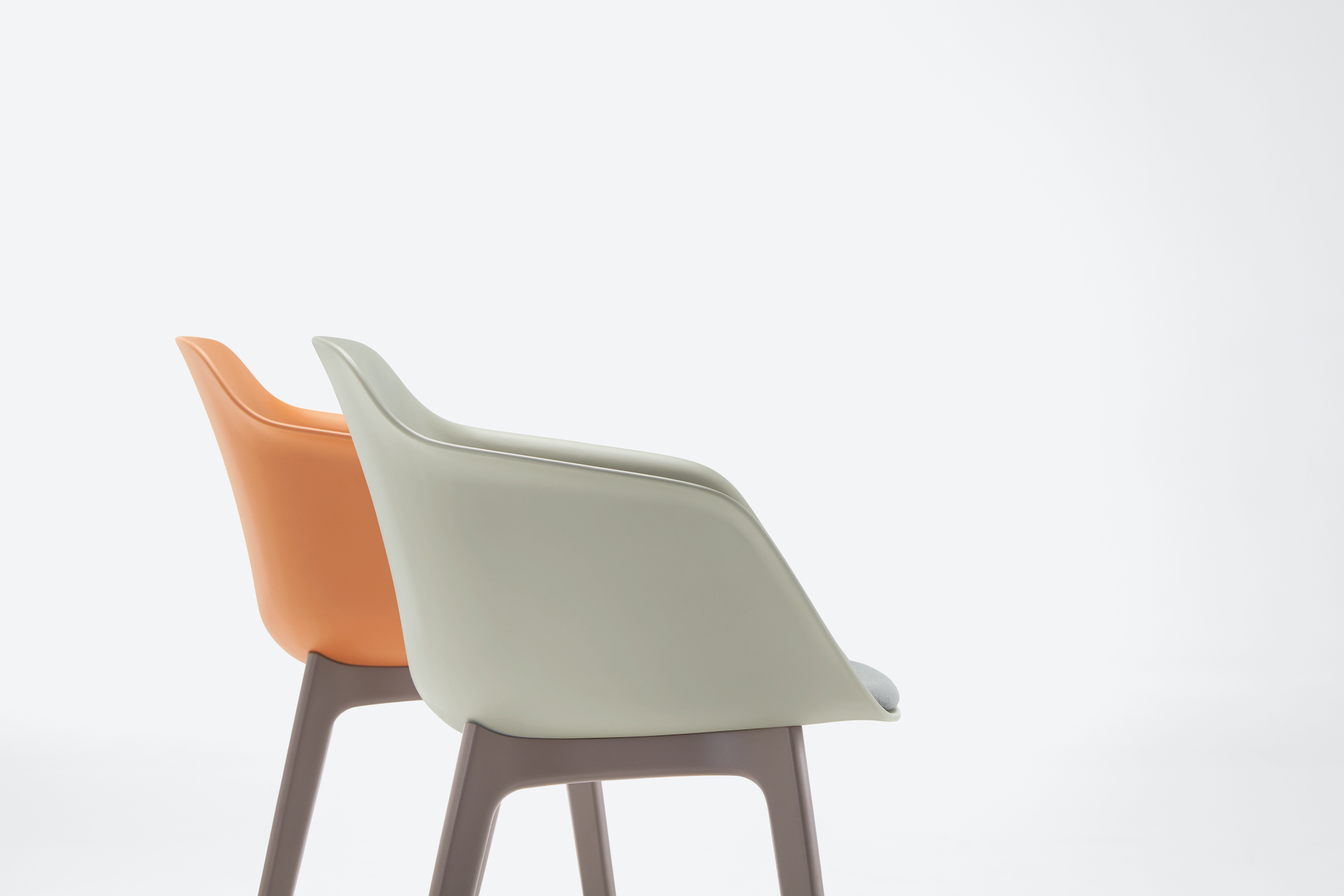 Inspired by the silhouette of an open flower, Taia is an extensive seating collection that offers versatility, functionality and comfort with a timeless aesthetic. The enveloping shells are constructed from moulded polypropylene and are available fully upholstered or with optional seat cushions if additional comfort is required.