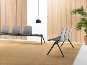 The Unnia 4 Leg and sled base chair are stackable up to 10 chairs on the floor or 20 chairs on a trolley. Accessories include a stacking trolley, writing tablet, linking mechanism and the option of nylon or felt glides to suit customer floor types.