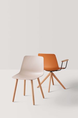 The Varya collection comprises an extensive range of chairs, armchairs, stools and benches. The seat shell is available in moulded thermoplastic in twelve colours and also upholstered in three variants. The collection is generated by combining comfortable seats and different metallic or timber bases.