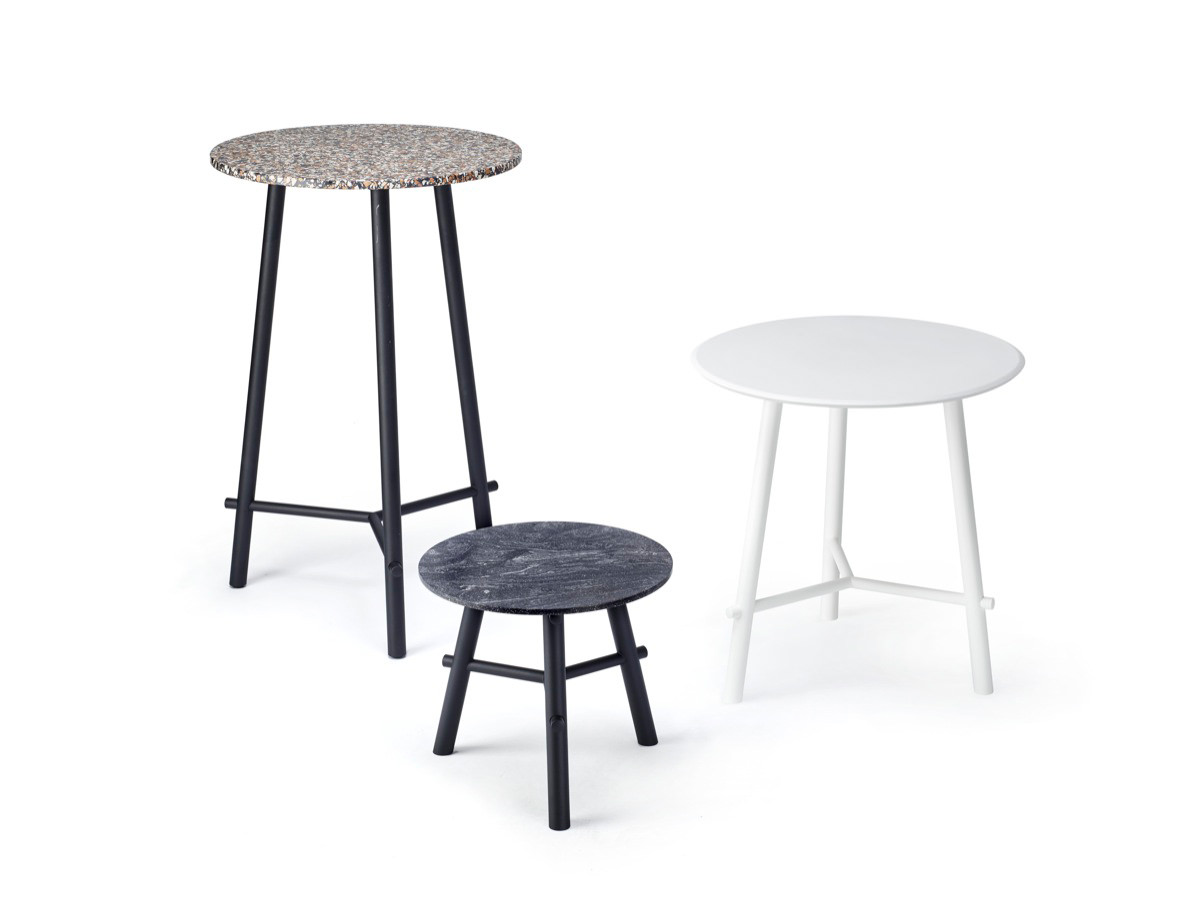 Table Top: Steel powdercoated to house colour, 17mm thick polypropylene to house colour, laminate, Timber, Terrazzo, Fenix-Nano Laminate or Corian, to selected house colour
