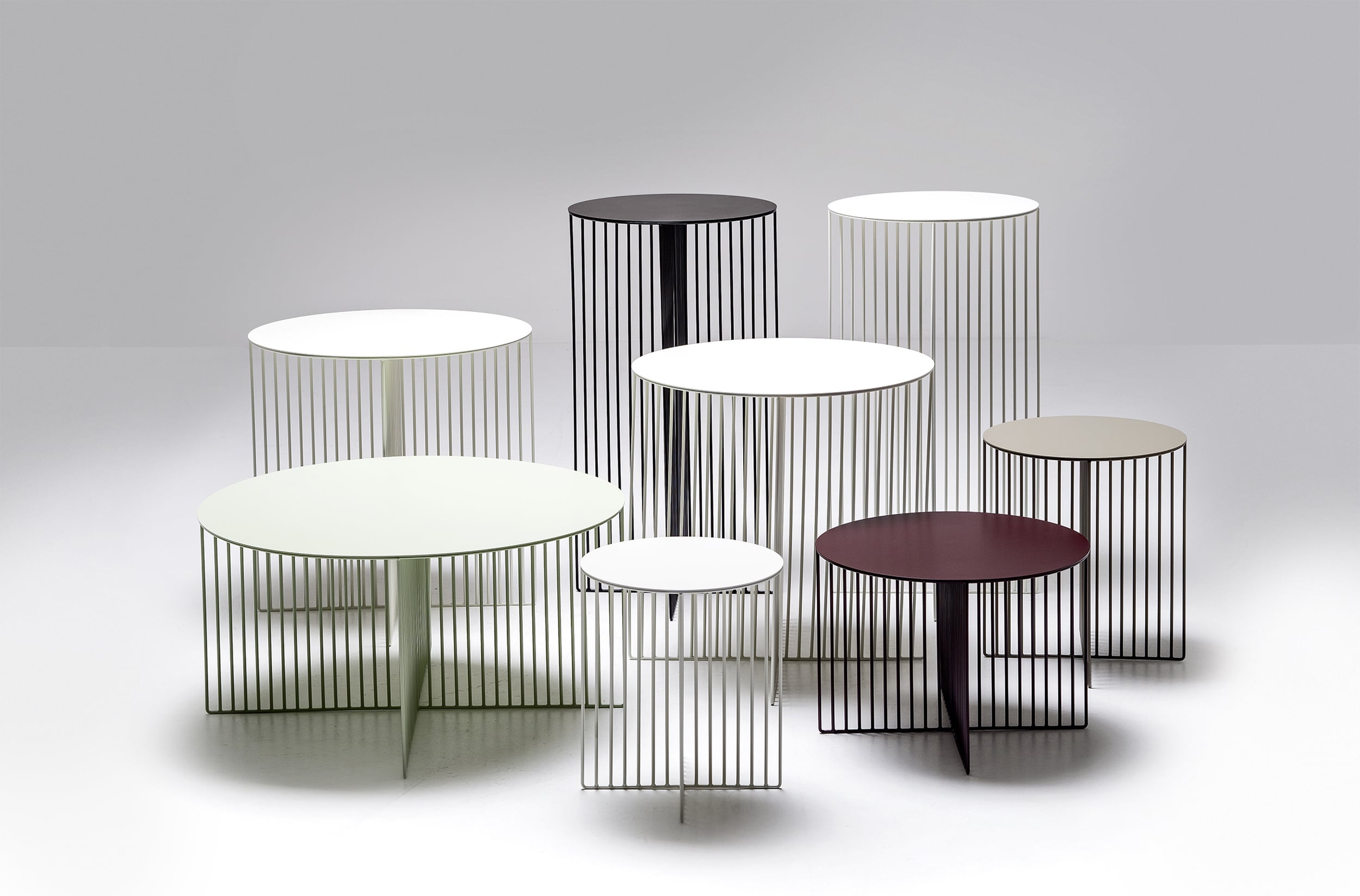 Accursio is a collection of wire framed steel tables with light cruciform bases that contrast with the solidity of the construction materials. As a result, the range is light and airy while also offering stability and solidity.