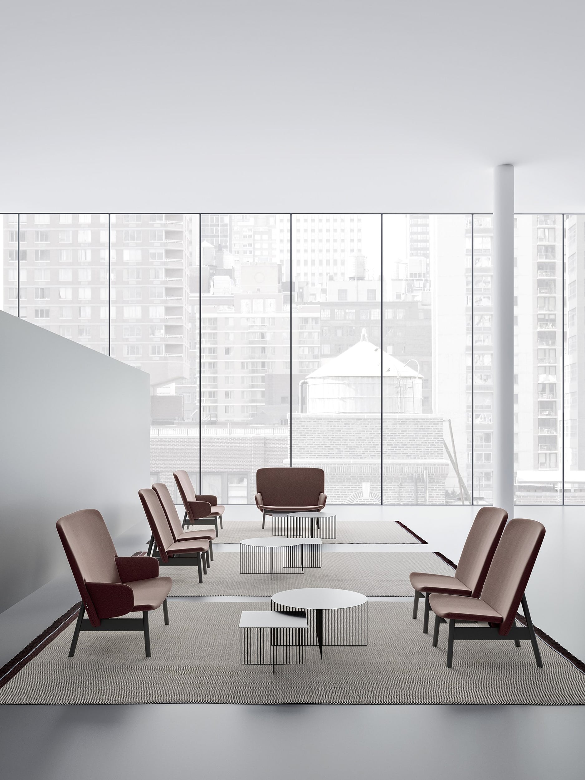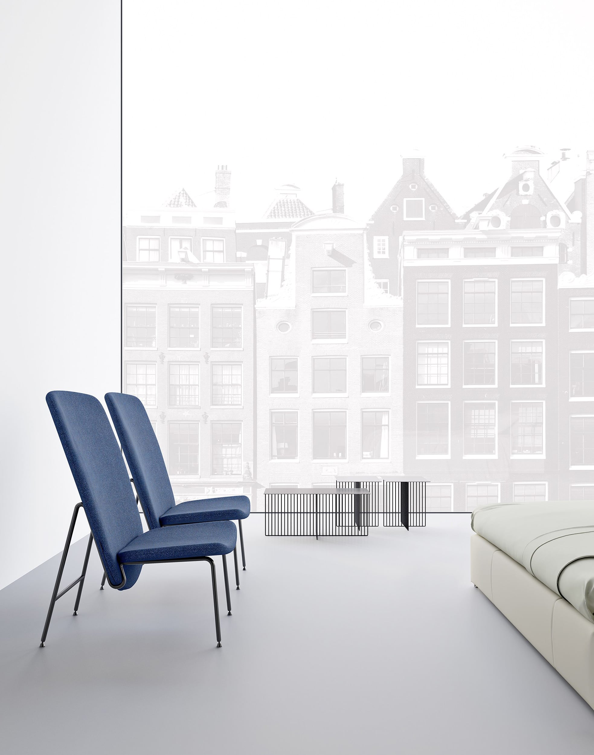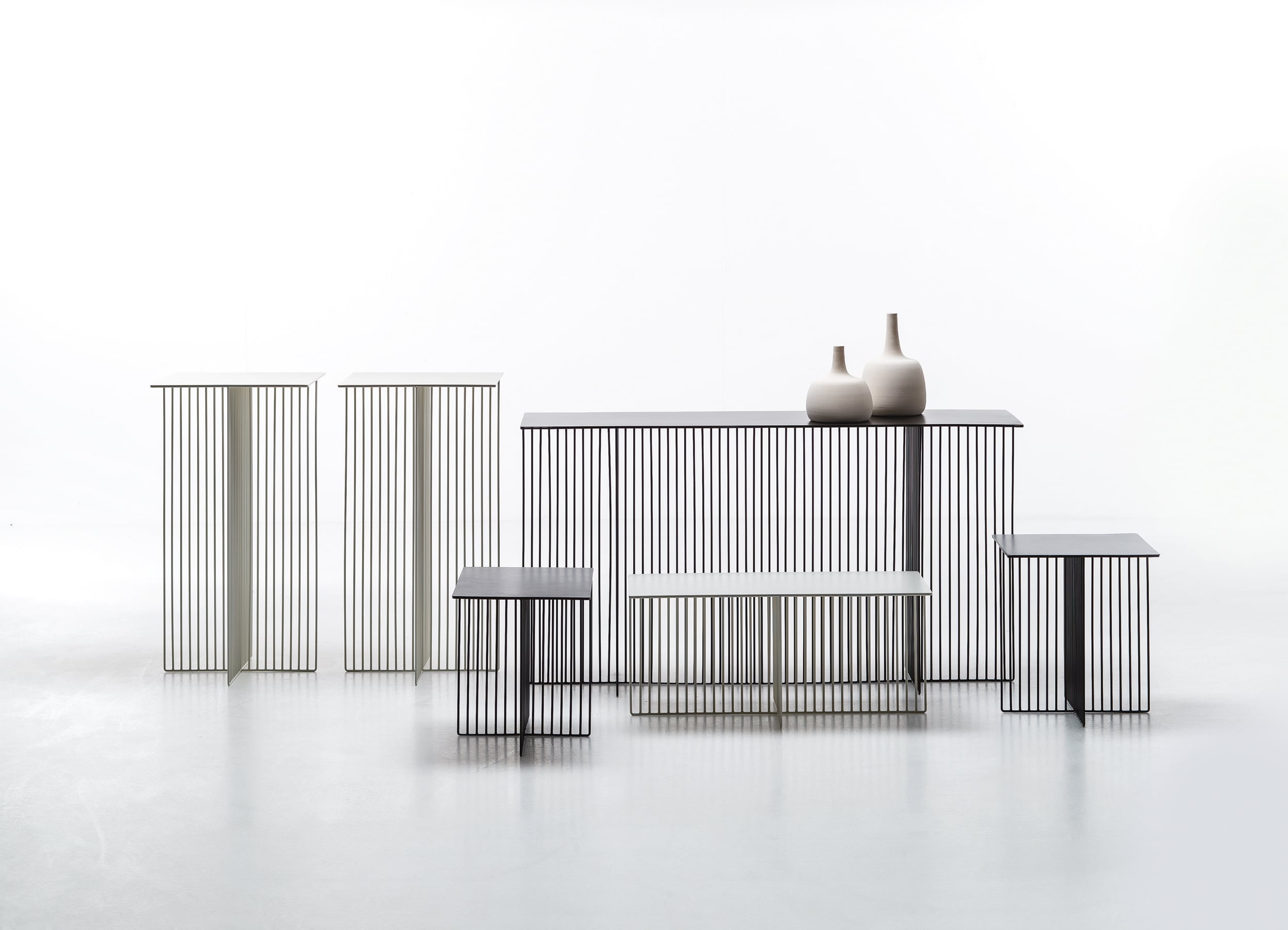 Accursio is a collection of wire framed steel tables with light cruciform bases that contrast with the solidity of the construction materials. As a result, the range is light and airy while also offering stability and solidity.