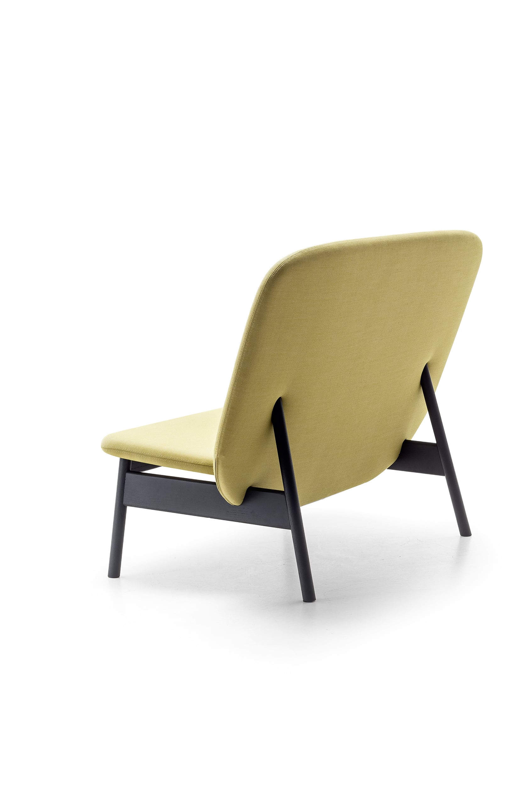 The Ala collection includes armchairs, sofas and foot stools of various sizes. Seating is available with either a mid or high back, with or without arms on a 4-Leg steel or timber frame.