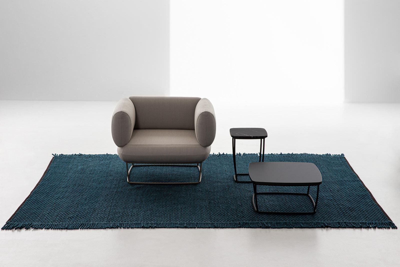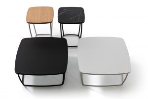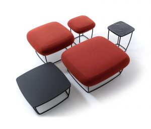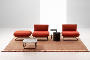 A series of upholstered components and table surfaces are introduced and interchanged to form a comprehensive collection of lounges, lounge chairs, ottomans and occasional tables – all sharing the distinct lightweight metal platform in common.