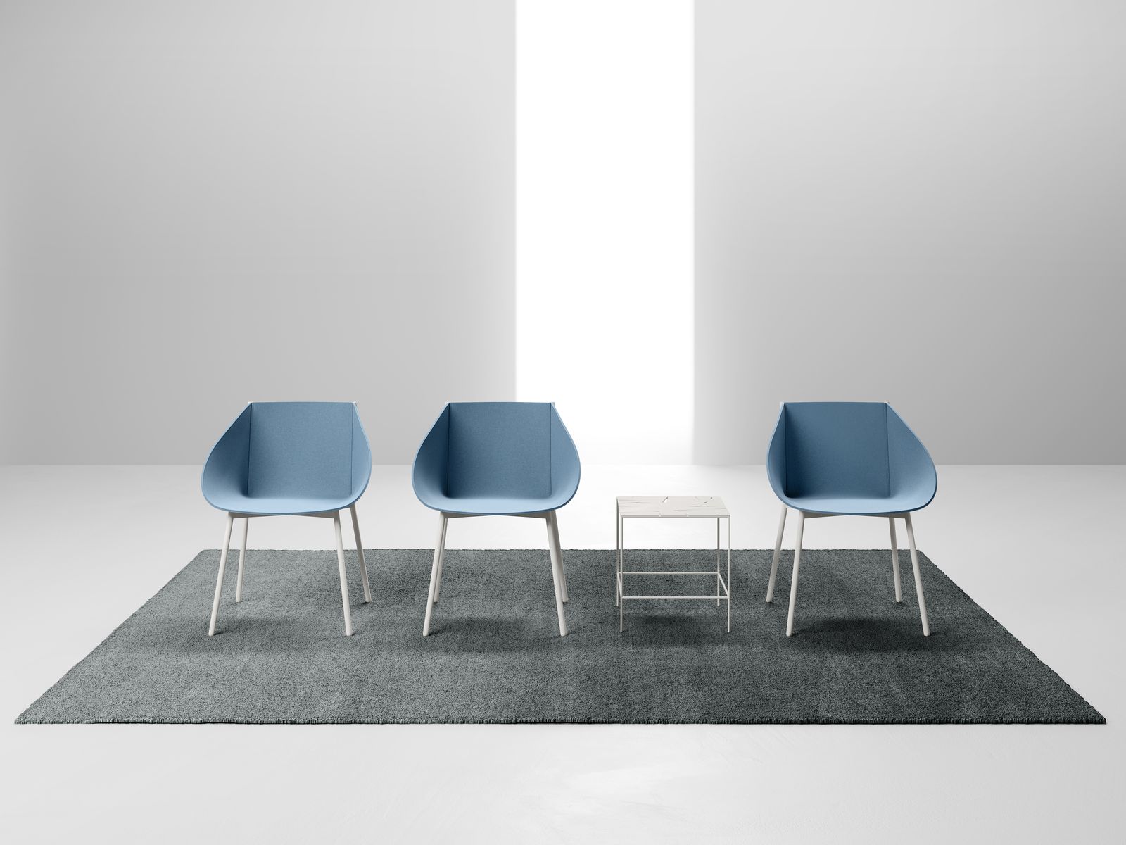 The body is produced flat and given a three-dimensional form when it is folded onto the frame. A natural balance is struck between soft and clean-cut forms, in a versatile, ergonomic design that is suitable for both the residential and contract spaces.