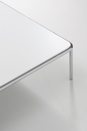 Up is a collection of coffee and side tables with meticulous detail and stylish proportions. The design utilises a tubular steel chrome frame which protectively surrounds the top surface material from side impact. Ideal for any busy thoroughfare or public reception area where appearance and durability is paramount.