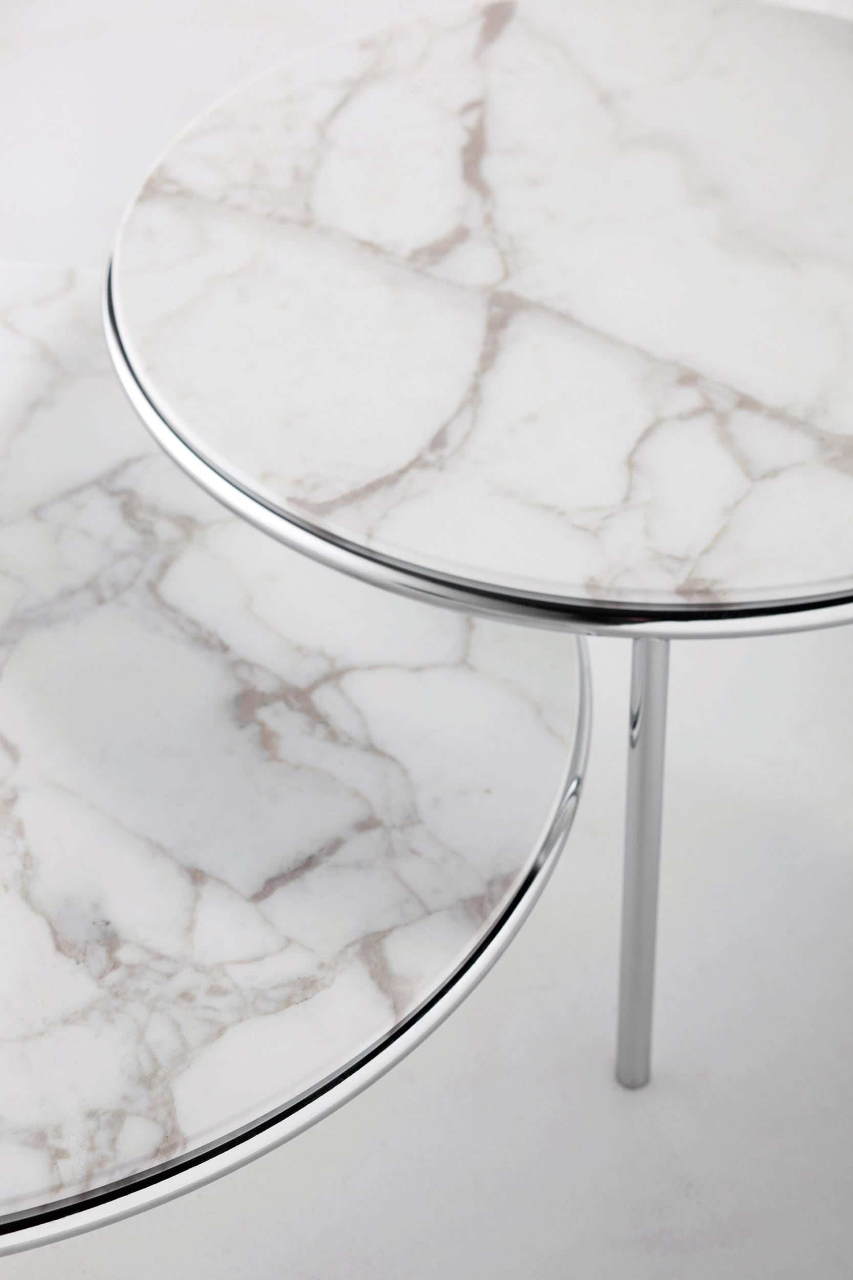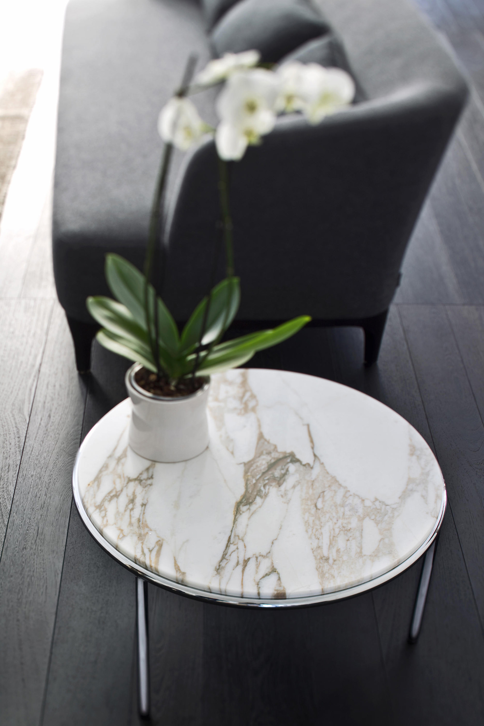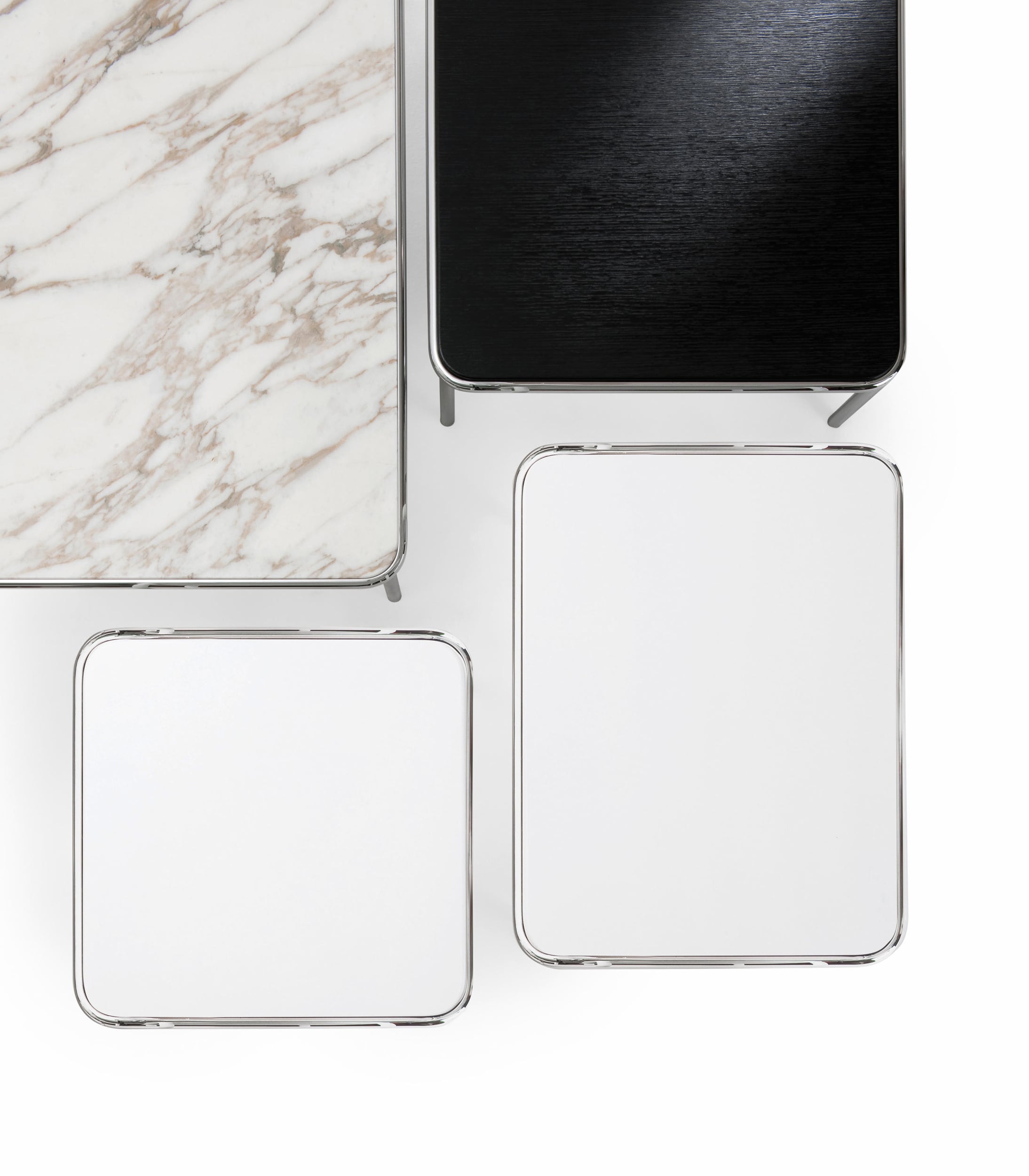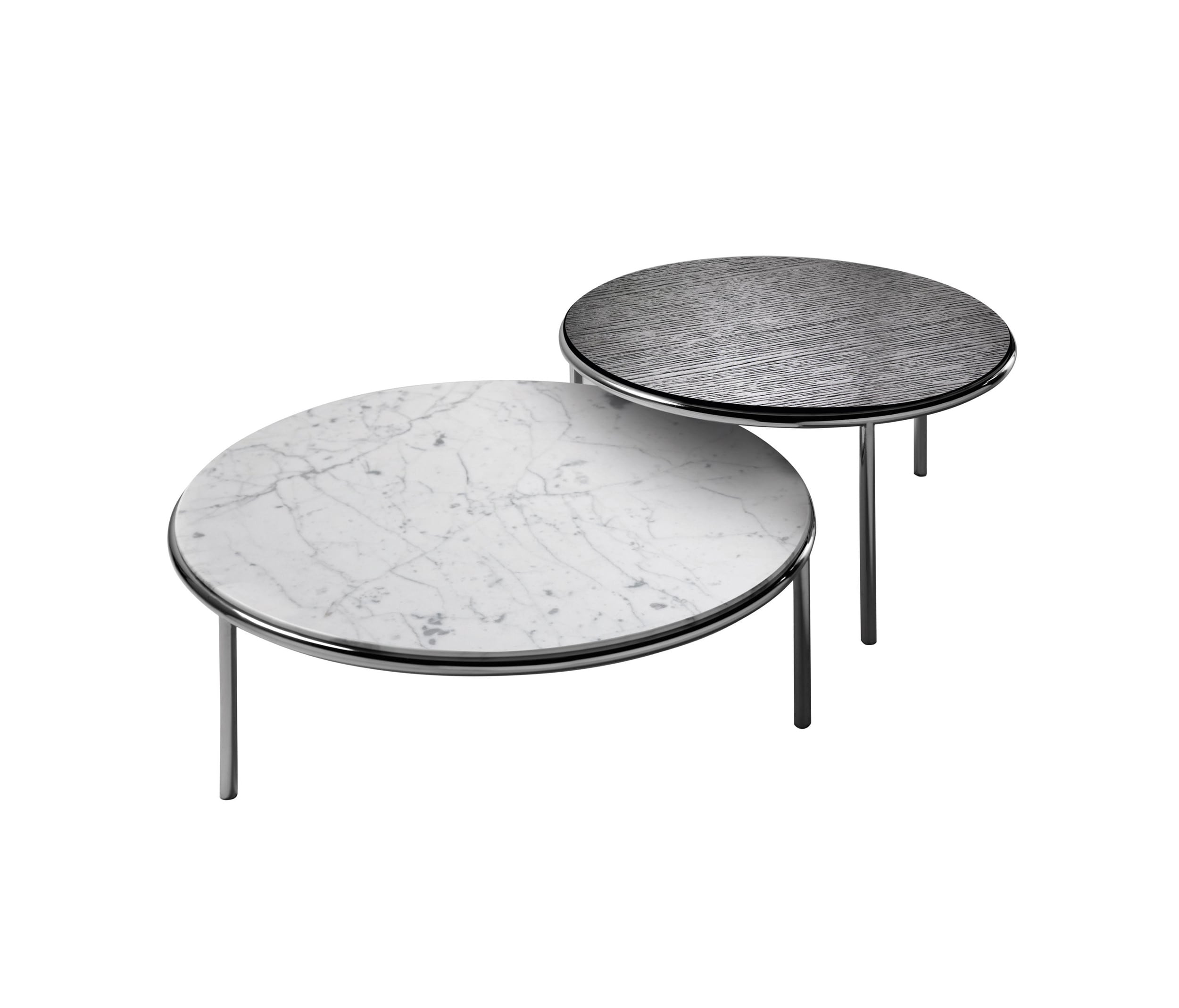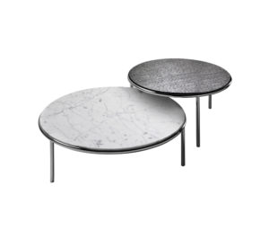 Up is available in round, or square and rectangular shapes with radius corners, in two heights and in a variety of materials and finishes. A timeless, vintage elegance prevails when the veins of marble are on display while the timber veneered versions are steeped in dynamic modernity.