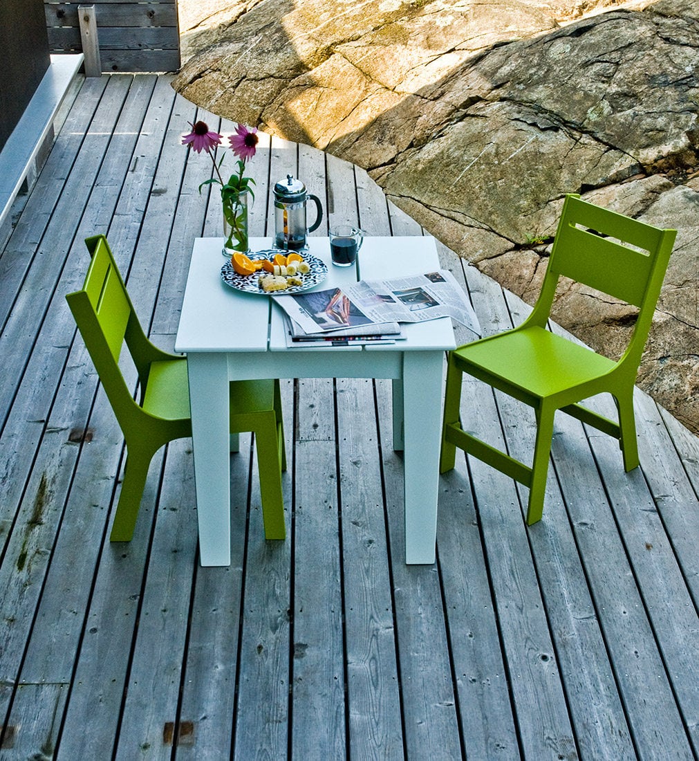 Constructed from 100 percent recycled HDPE, the Cricket chair offers unapparelled durability in modern outdoor furniture while requiring no maintenance, ever. The Cricket Chair is available with a slotted or solid back.