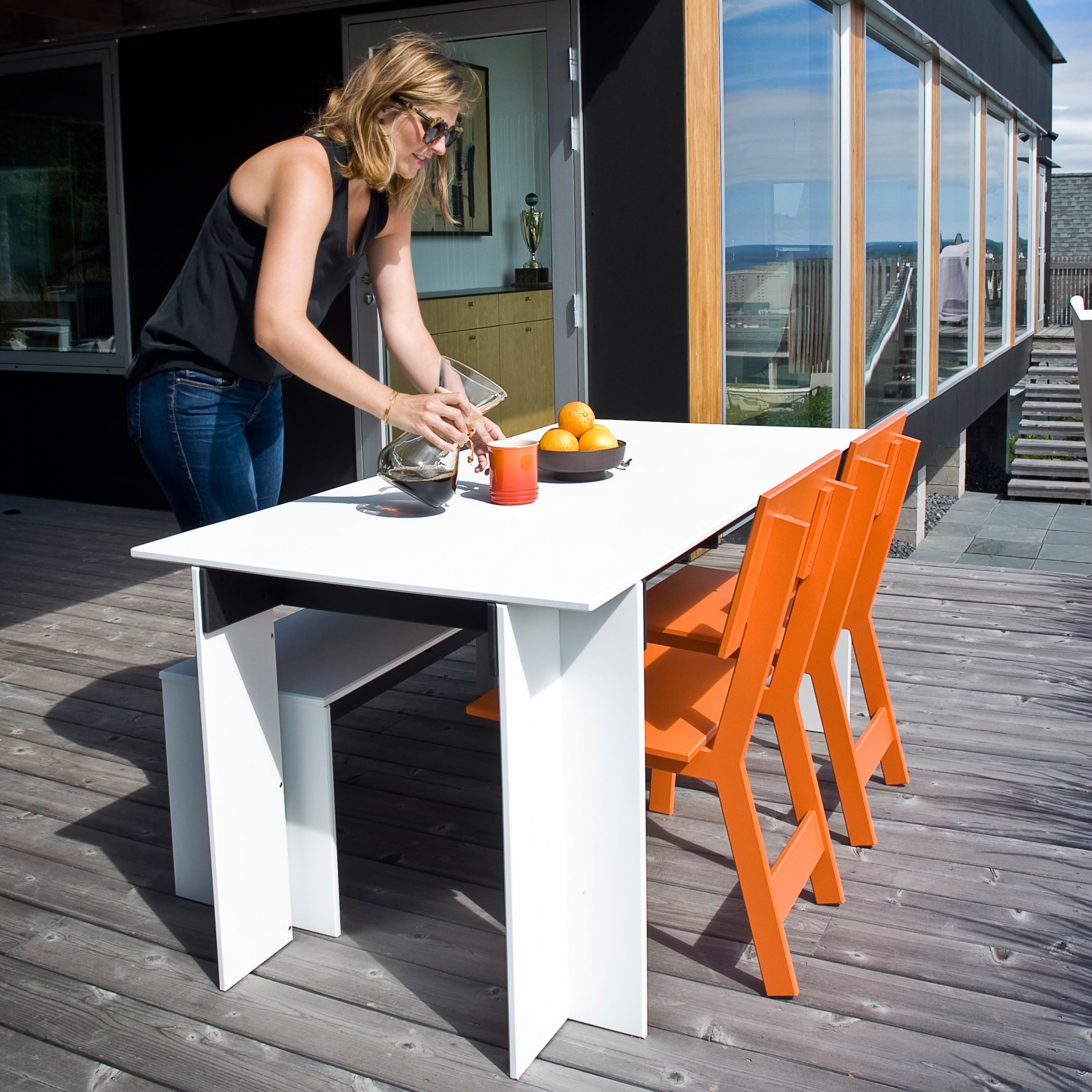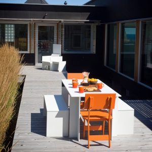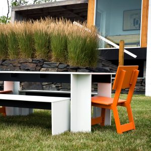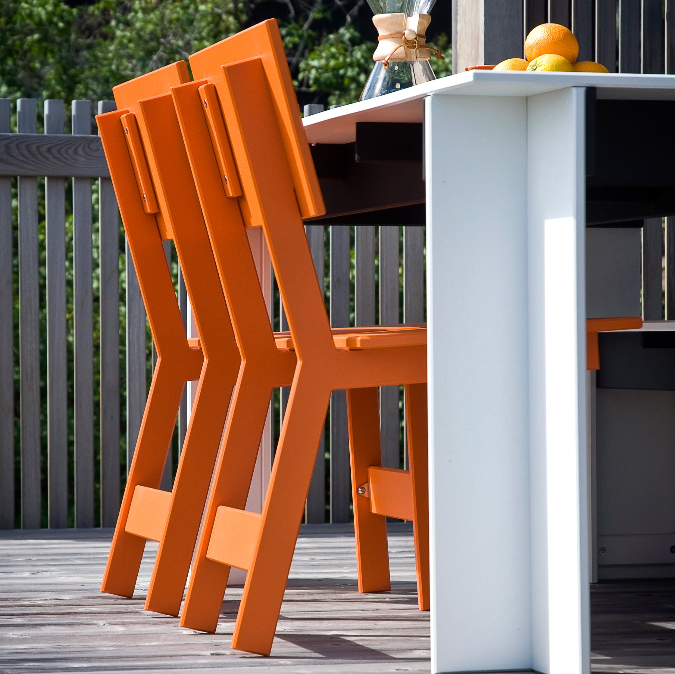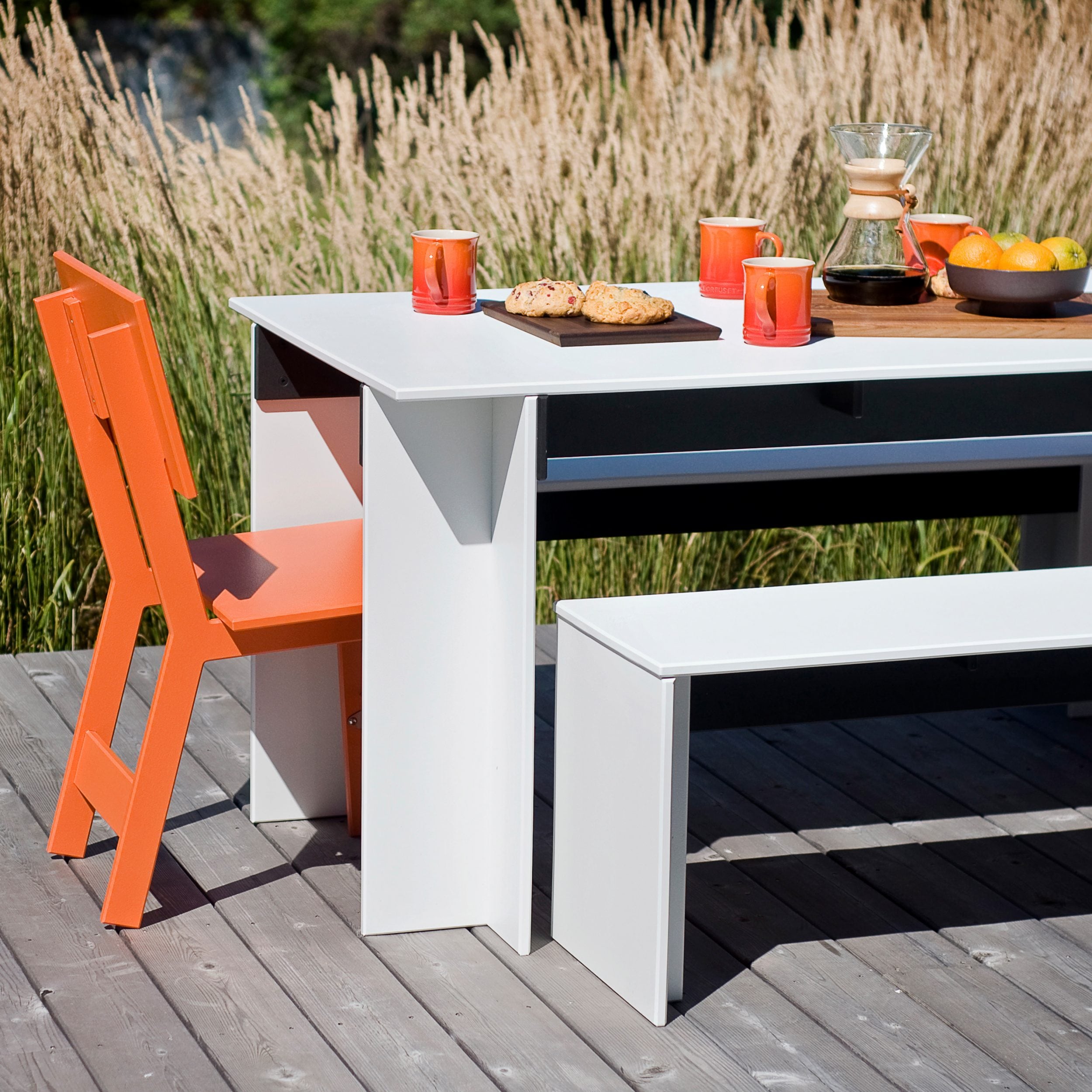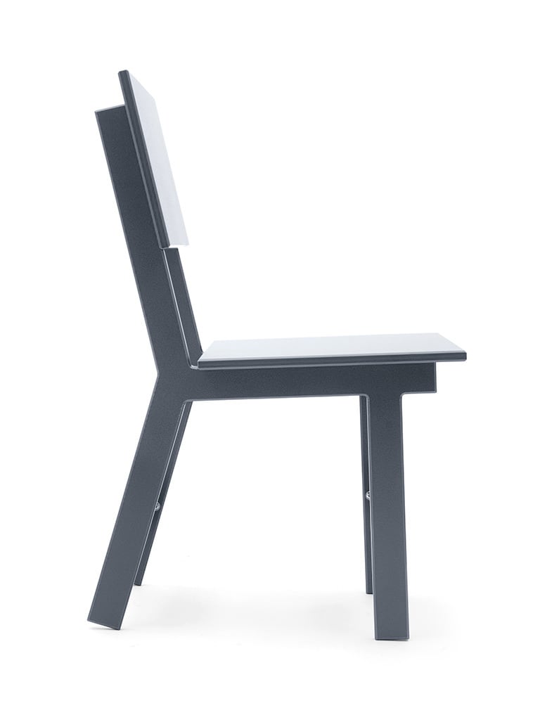 Dining chairs need to fit into fairly tight parameters, and under architect David Salmela, the margins are even tighter. Part of the Salmela Collection, this compact outdoor dining chair is more than it appears.