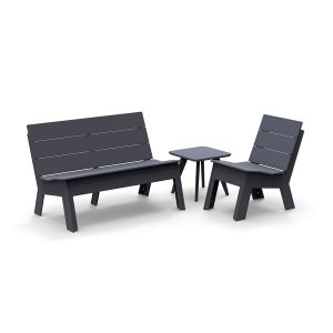 Inspired by the look and versatility of the Loll Picket Collection, the Fire lounge chair and bench were created to provided another armless option for outdoor spaces. Featuring horizontal back slats with a contoured seat and a slightly taller lounging height, this collection will encourage you to sit a little longer and stare at the fire.