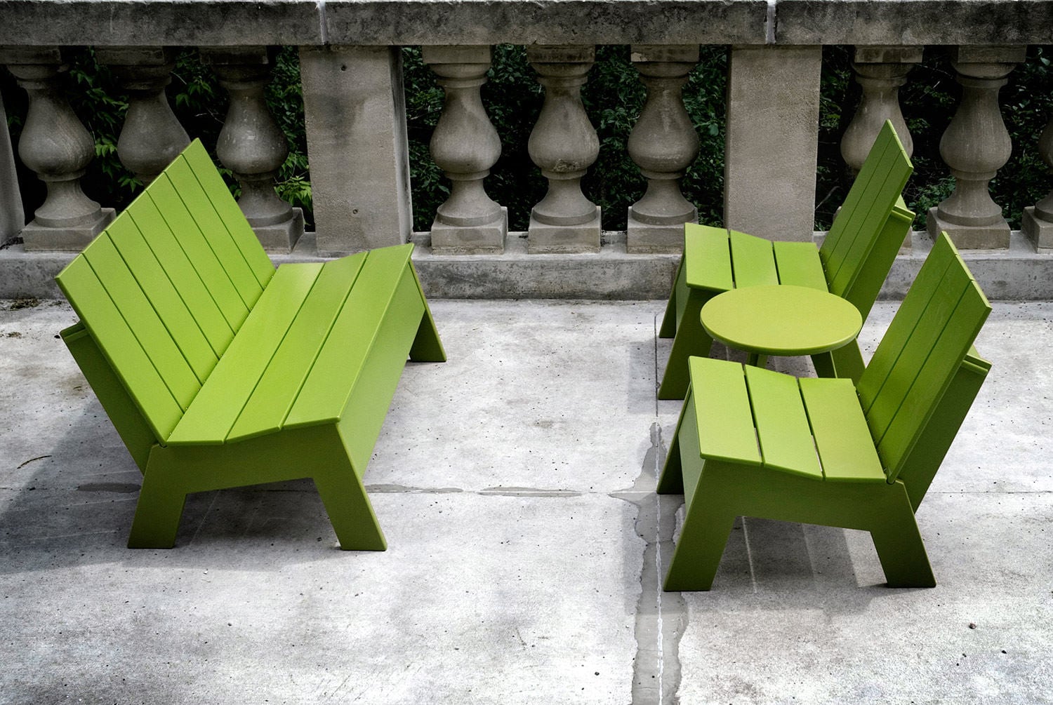 Picket is available as a lounge chair in 2 seat heights and a bench seat available in two lengths.