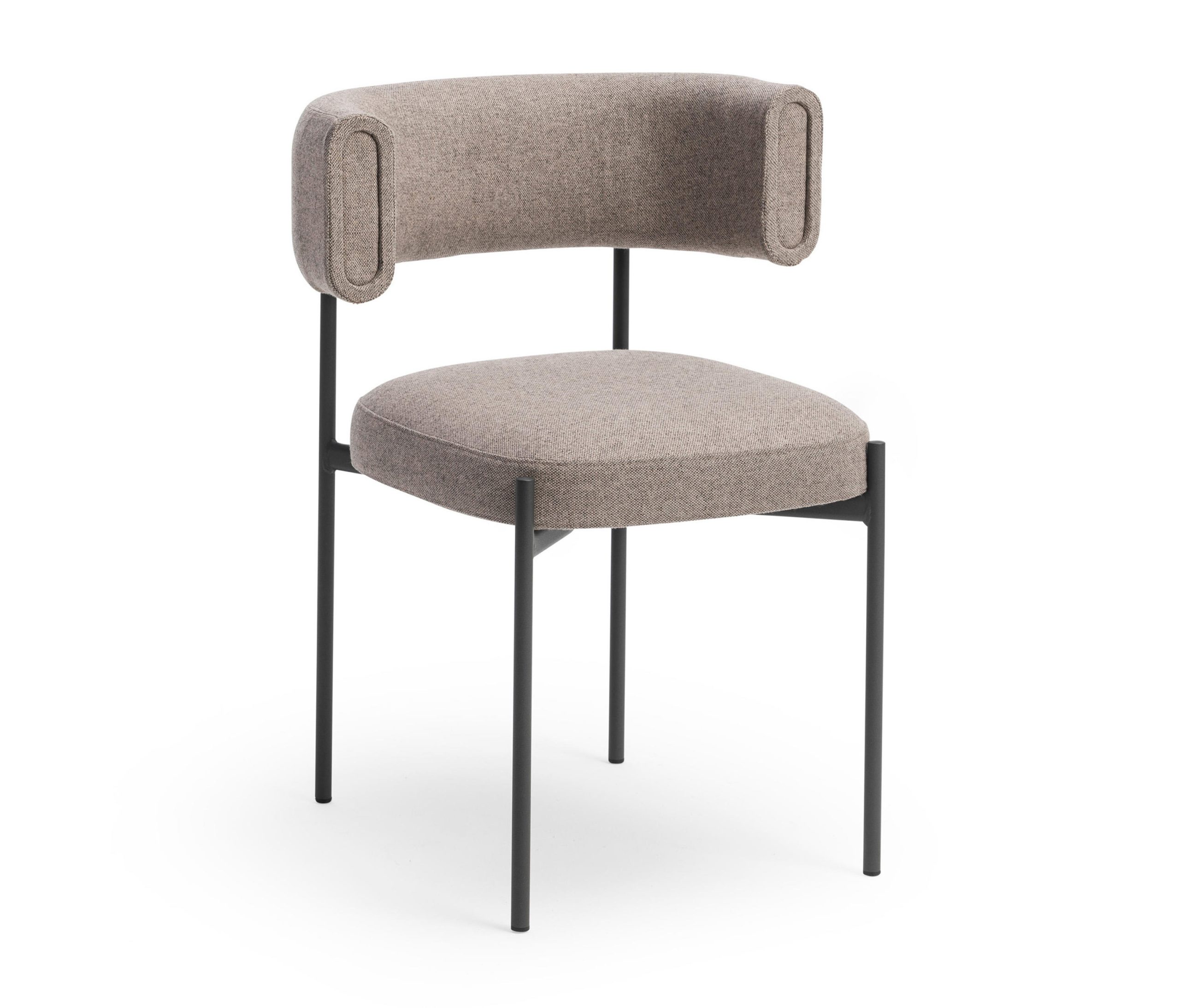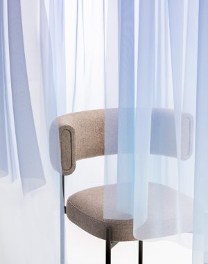 Amelie exemplifies sophistication, characterised by its foundational four-leg metal base. Featuring a meticulously upholstered backrest and seat, providing a luxurious choice between leather or fabric coverings.