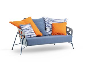 The name Bolle, meaning bubbles, derives from the process of producing the metal shells, which leaves Bolle with a striking texture and strong graphic impact. The seats are presented as cradling shells, that can be customised with cushions to elevate comfort.