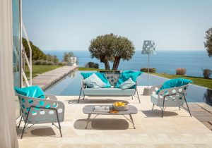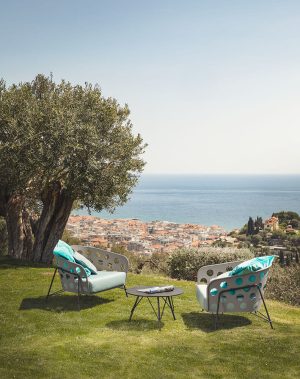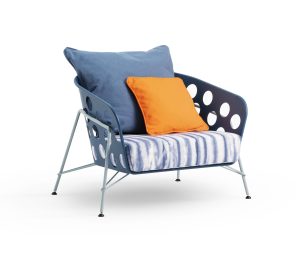 The Bolle collection was created for outdoors and features macro-perforated coloured metal, with a soft and playfully captivating aesthetic. Bolle comes in armchairs, lounges, coffee tables and lamps.