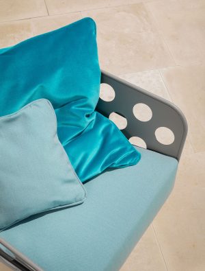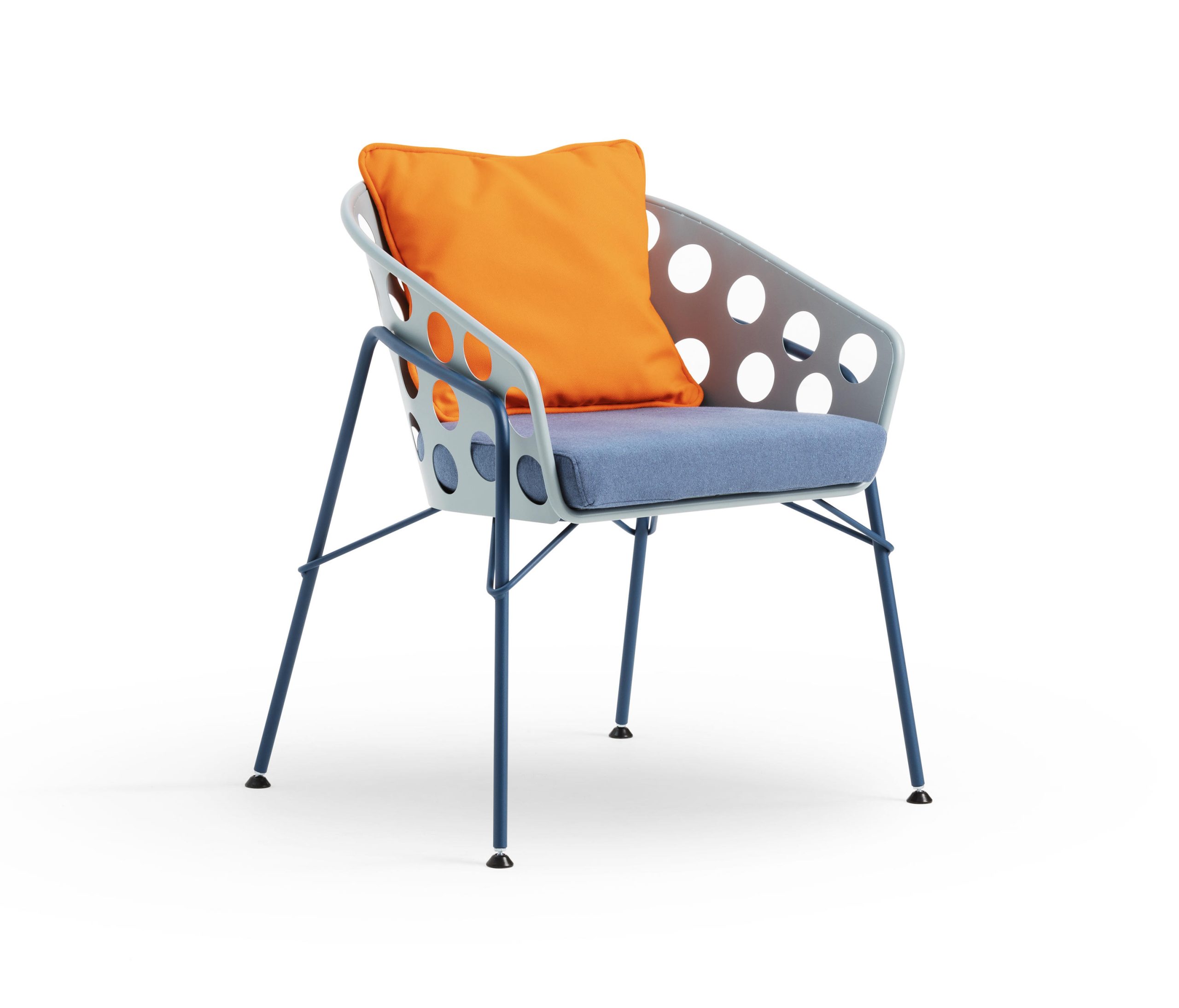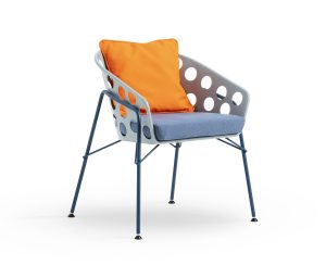 The name Bolle, meaning bubbles, derives from the process of producing the metal shells, which leaves Bolle with a striking texture and strong graphic impact. The seats are presented as cradling shells, that can be customised with cushions to elevate comfort.