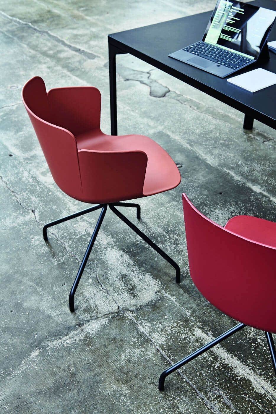 Calla is available in two versions, either a chair or an armchair, both characterised by an essential look and made in polypropylene, or fully upholstered in a wide range of finishes, to satisfy different preferences and lifestyles.