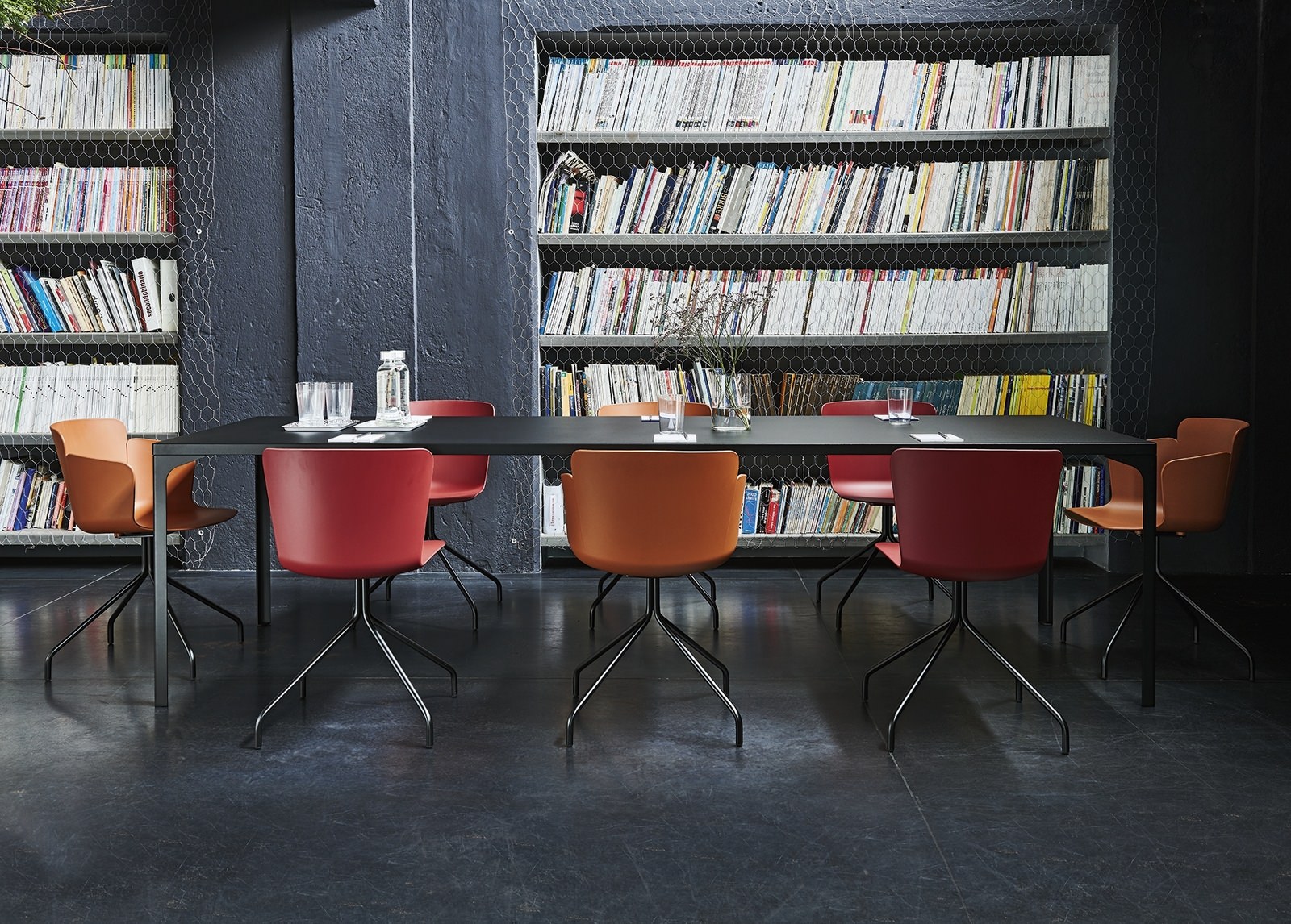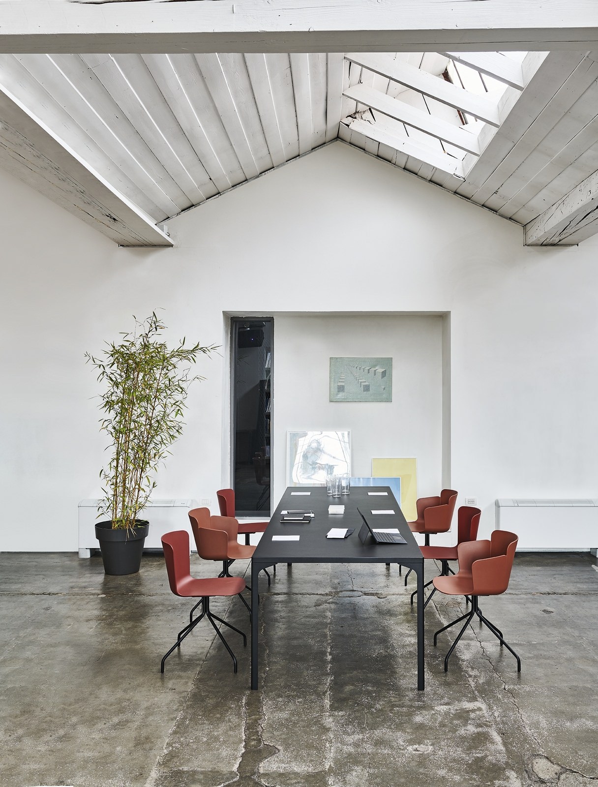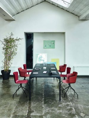 Calla is available in two versions, either a chair or an armchair, both characterised by an essential look and made in polypropylene, or fully upholstered in a wide range of finishes, to satisfy different preferences and lifestyles.