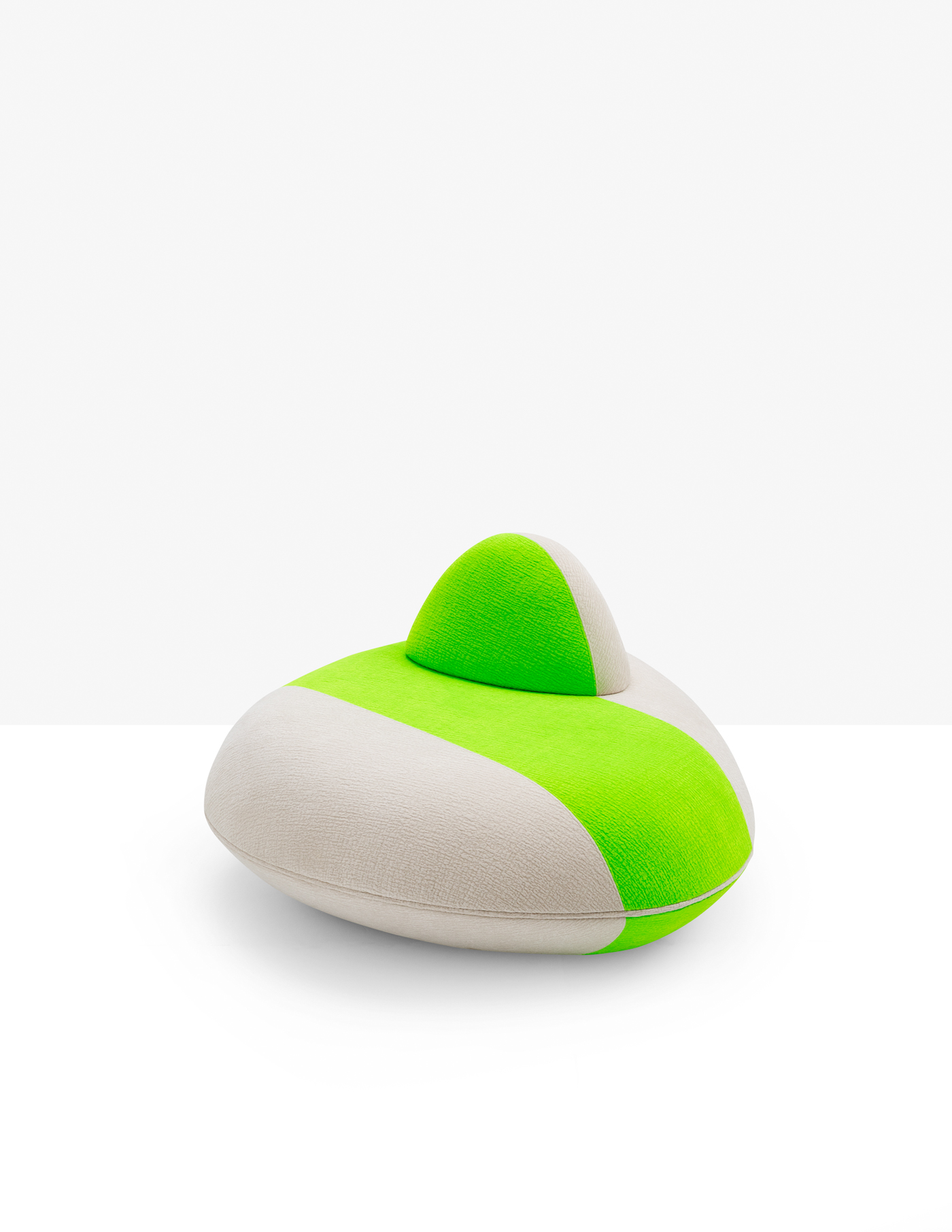Kosmos is a bold fusion of futuristic design and playful minimalism. Designed by Karim Rashid, each piece features soft, bi-elastic fabric upholstery and a distinctive coloured bandeither matching or contrastingthat wraps around its form, adding a dynamic visual element. The optional backrest, cleverly weighted for stability, can be repositioned freely without any fastening system, allowing for versatile configurations without compromising the clean, uninterrupted silhouette. Available as ottoman or in small, medium, and large sizes, Kosmos brings a touch of cosmic charm to contemporary interiors.