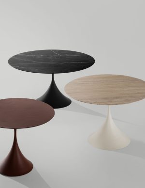 Available in a selection of sizes and finishes including ceramic, marble, veneer, glass and HPL Leo offers quiet sophistication across hospitality, workplace and residential spaces. Its clean geometry pairs effortlessly with a wide range of seating, bringing versatility and balance to any setting.