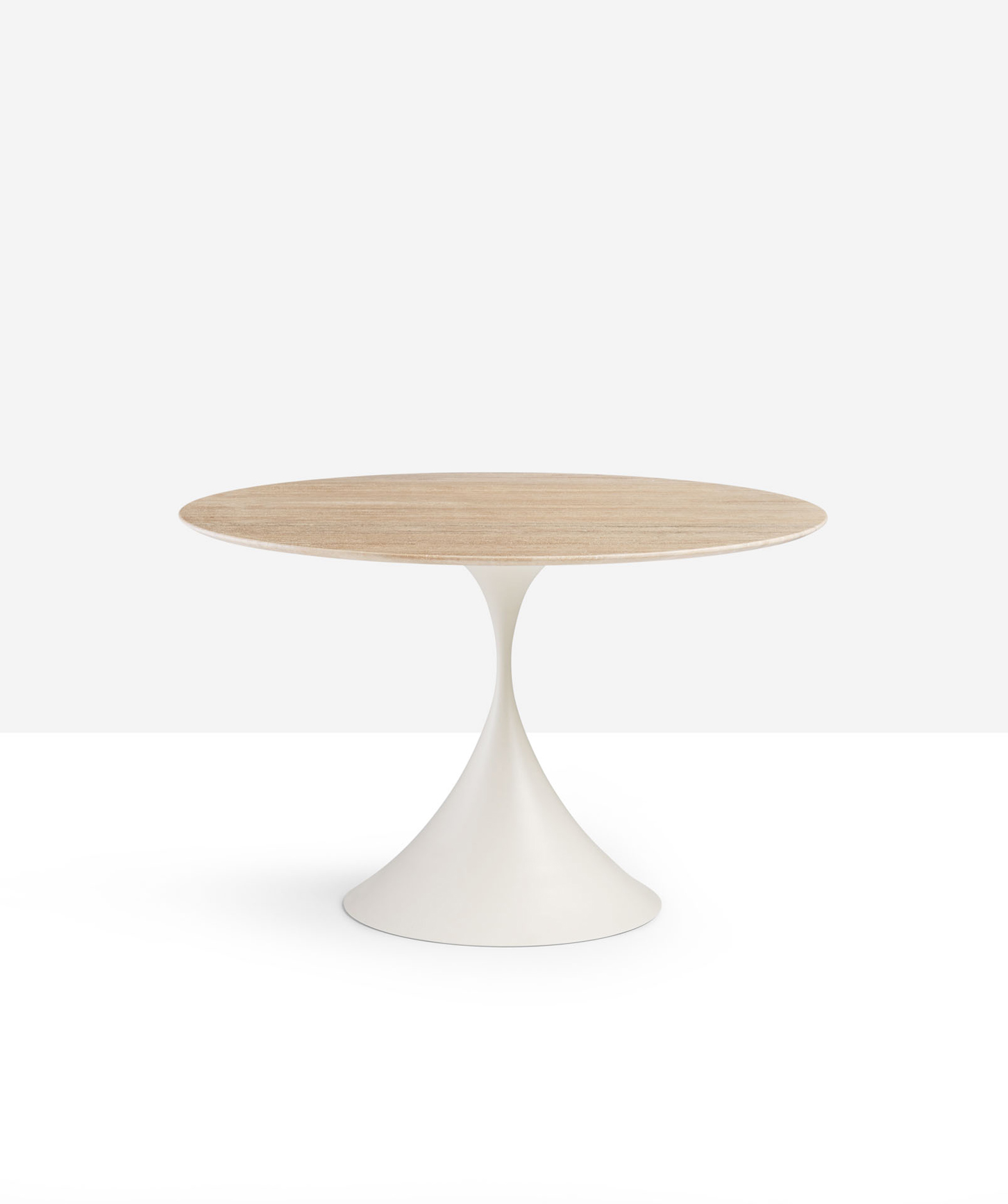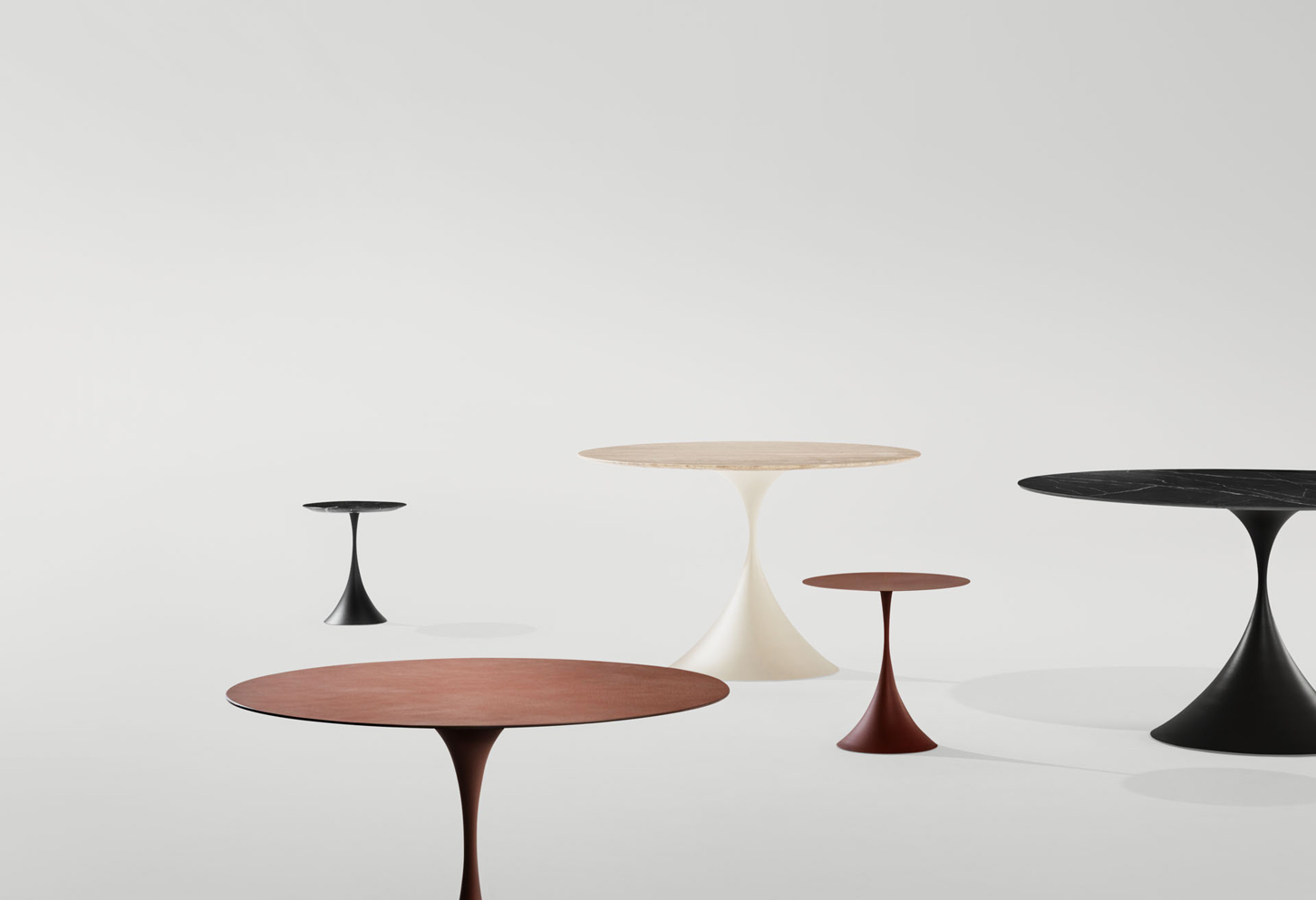 Refined and minimal, Leo reinterprets the classic pedestal base with a light, architectural touch. Designed by Paolo Vernier, the range includes round dining, meeting, bistro and coffee tables, all anchored by a distinctive slimline column.