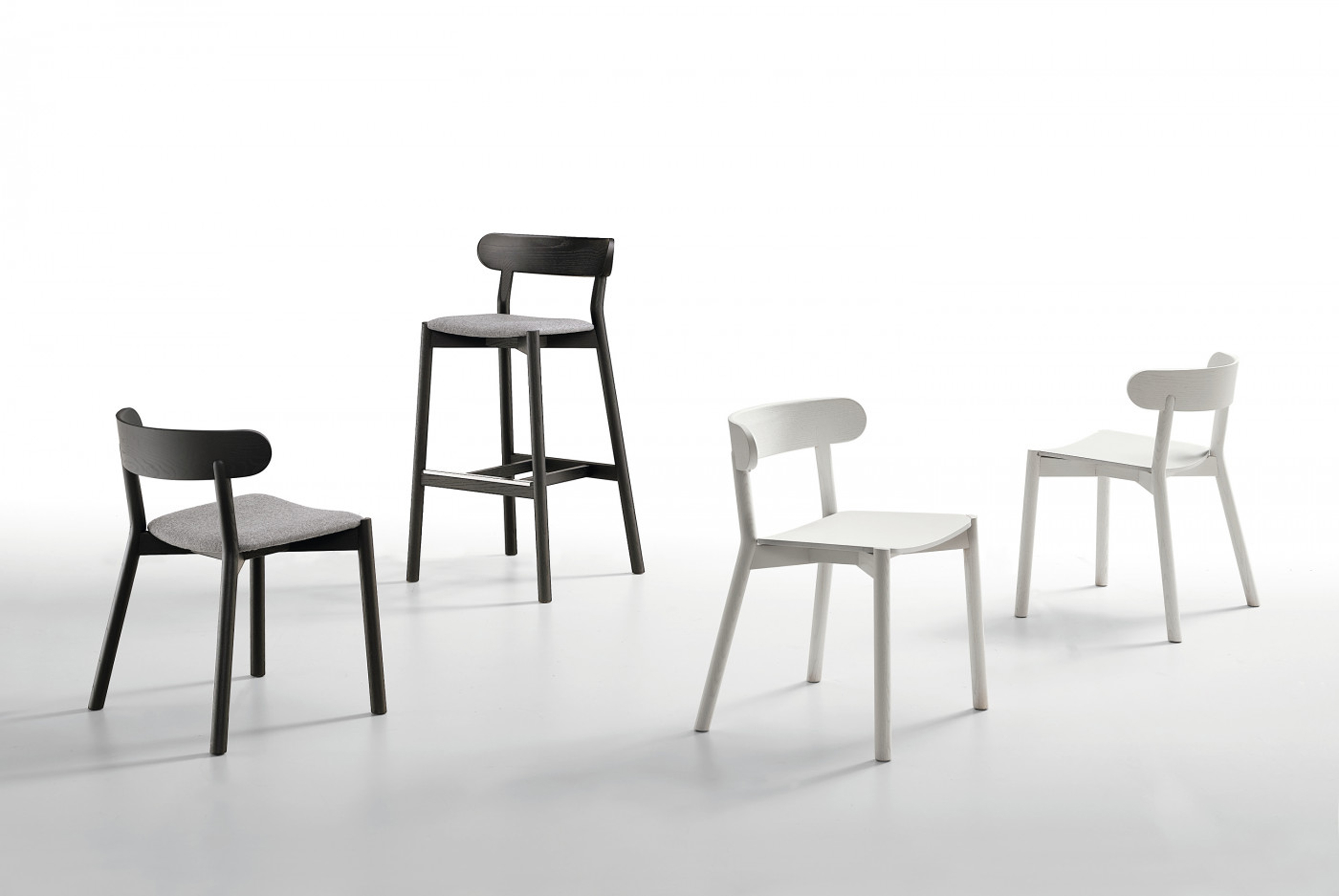 A simple but high-performance chair, constructed entirely of Ash wood. The personalisation of the seat with the fabric or leather allows to make the product even more comfortable.
