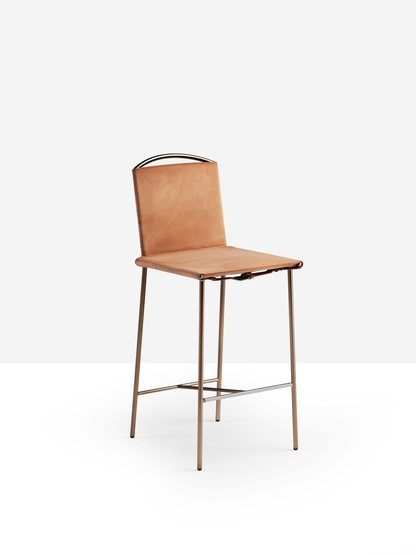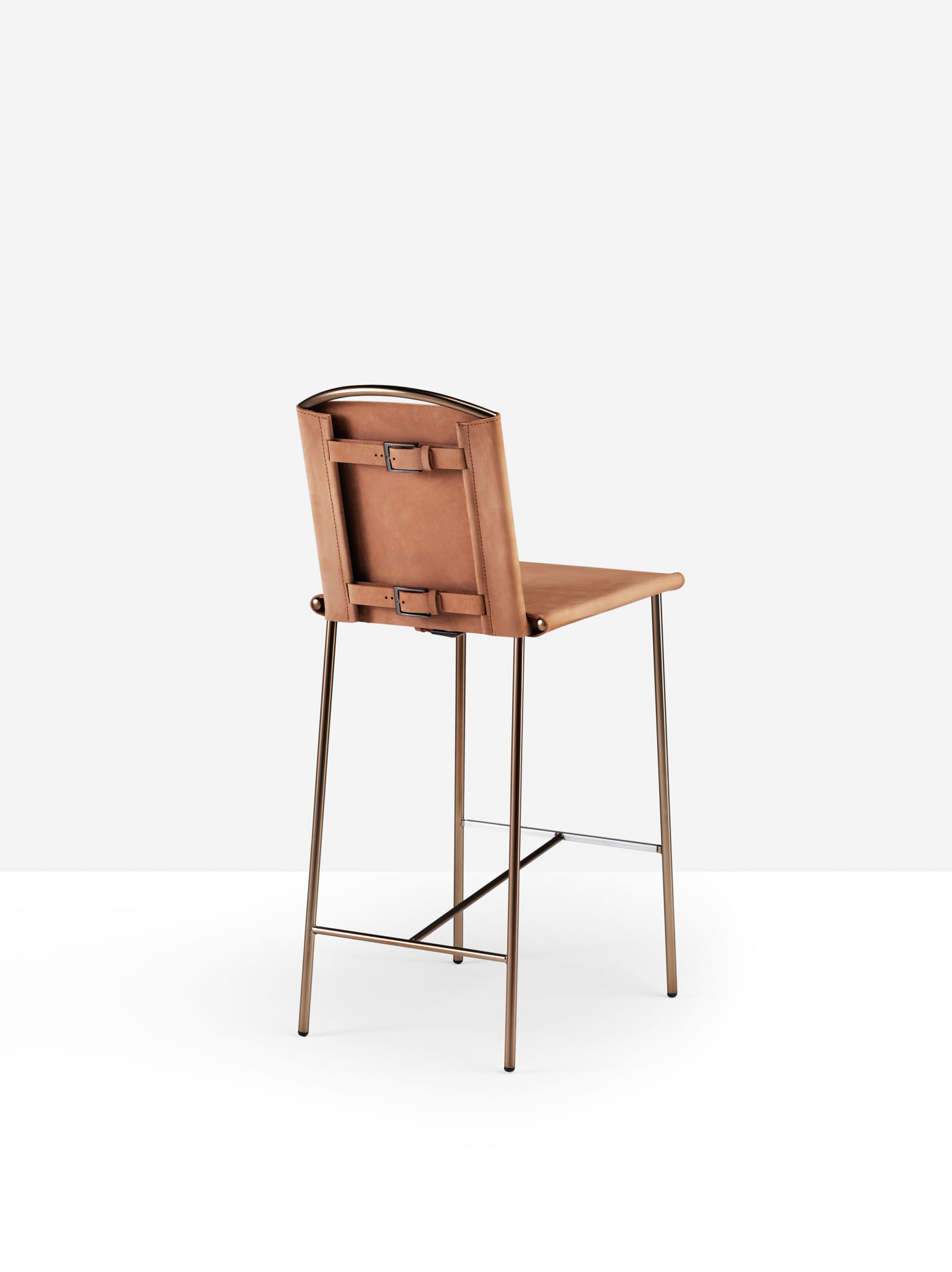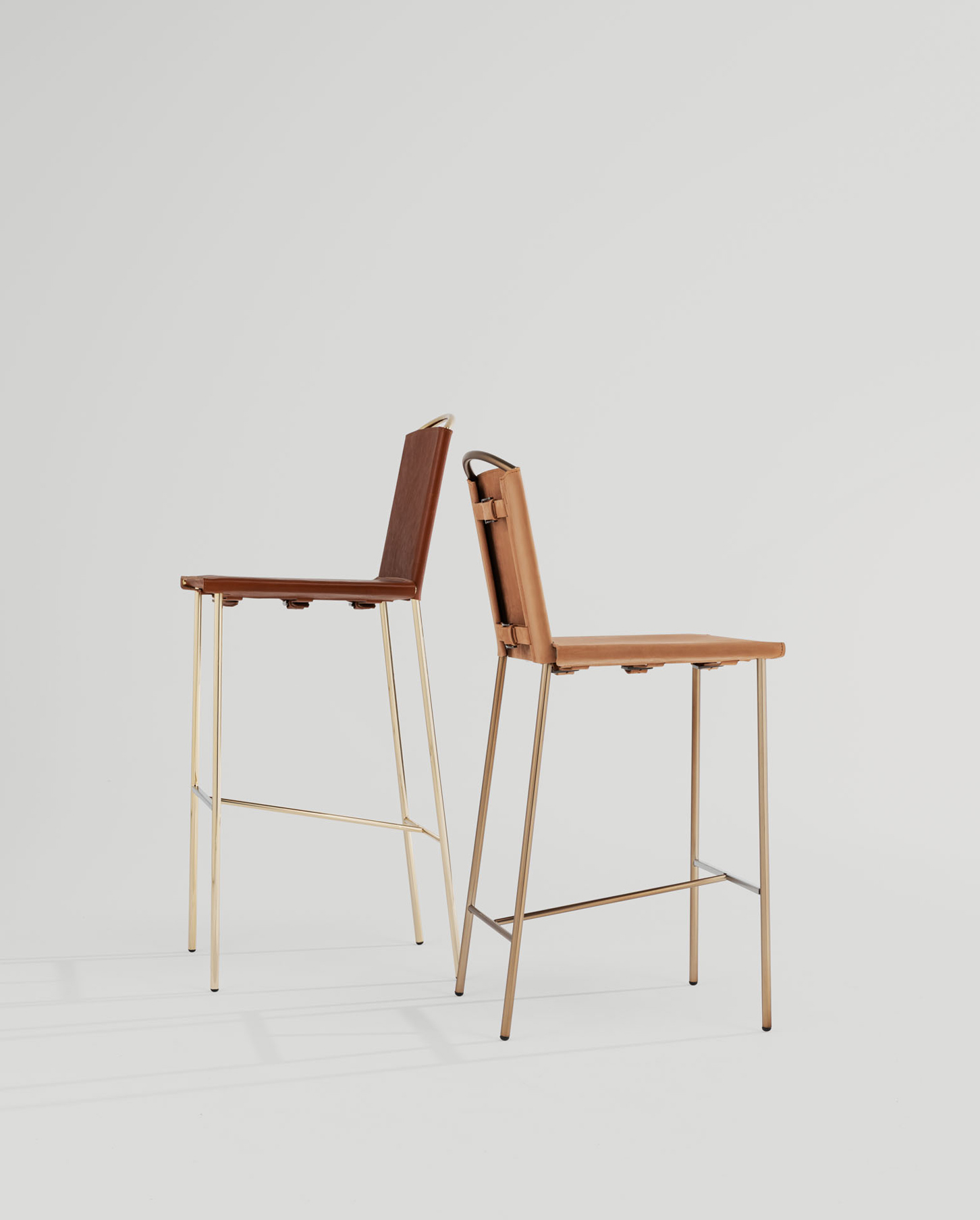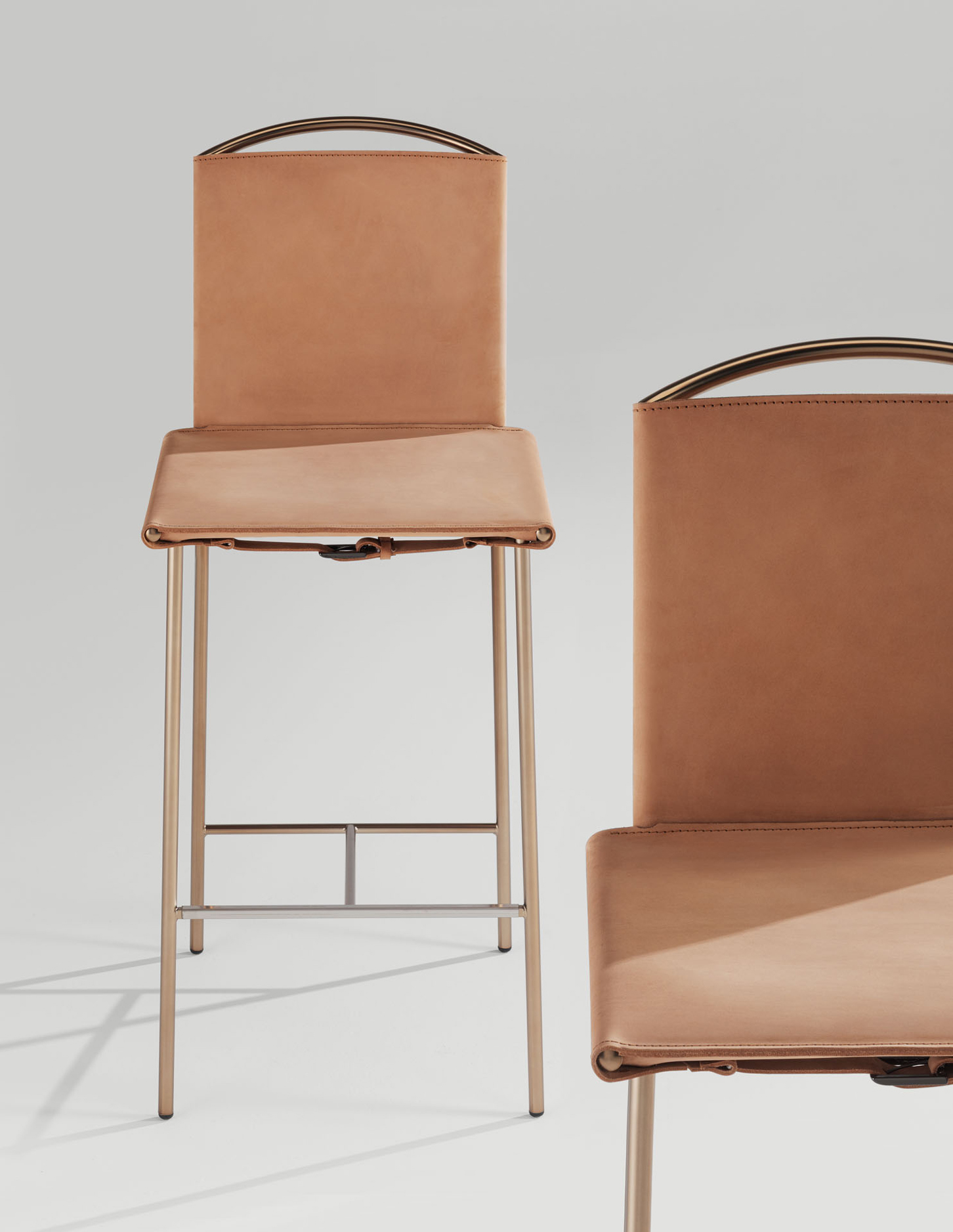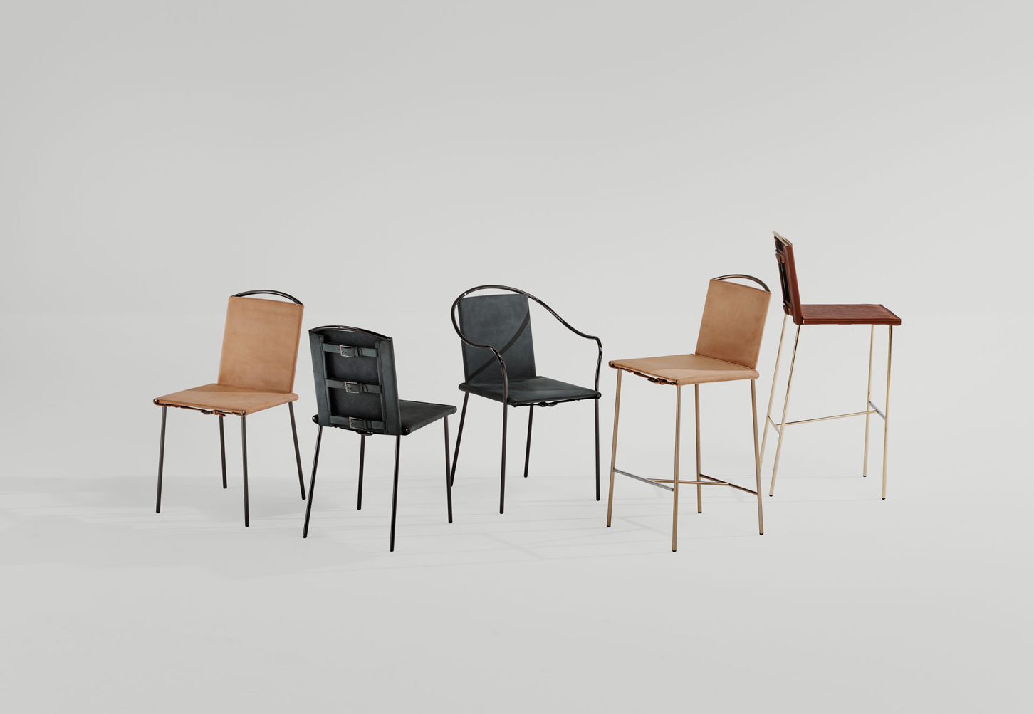 Paolo Vernier’s Rem explores the refined balance between structure and material. Slim, geometric lines define a minimalist silhouette, while leather straps wrap elegantly around the metal frame – creating a striking contrast in texture and form.