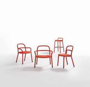 The collection is extremely versatile and customizable thanks to the wide range of colors available both for the fabric and for the chairs’ steel feet.