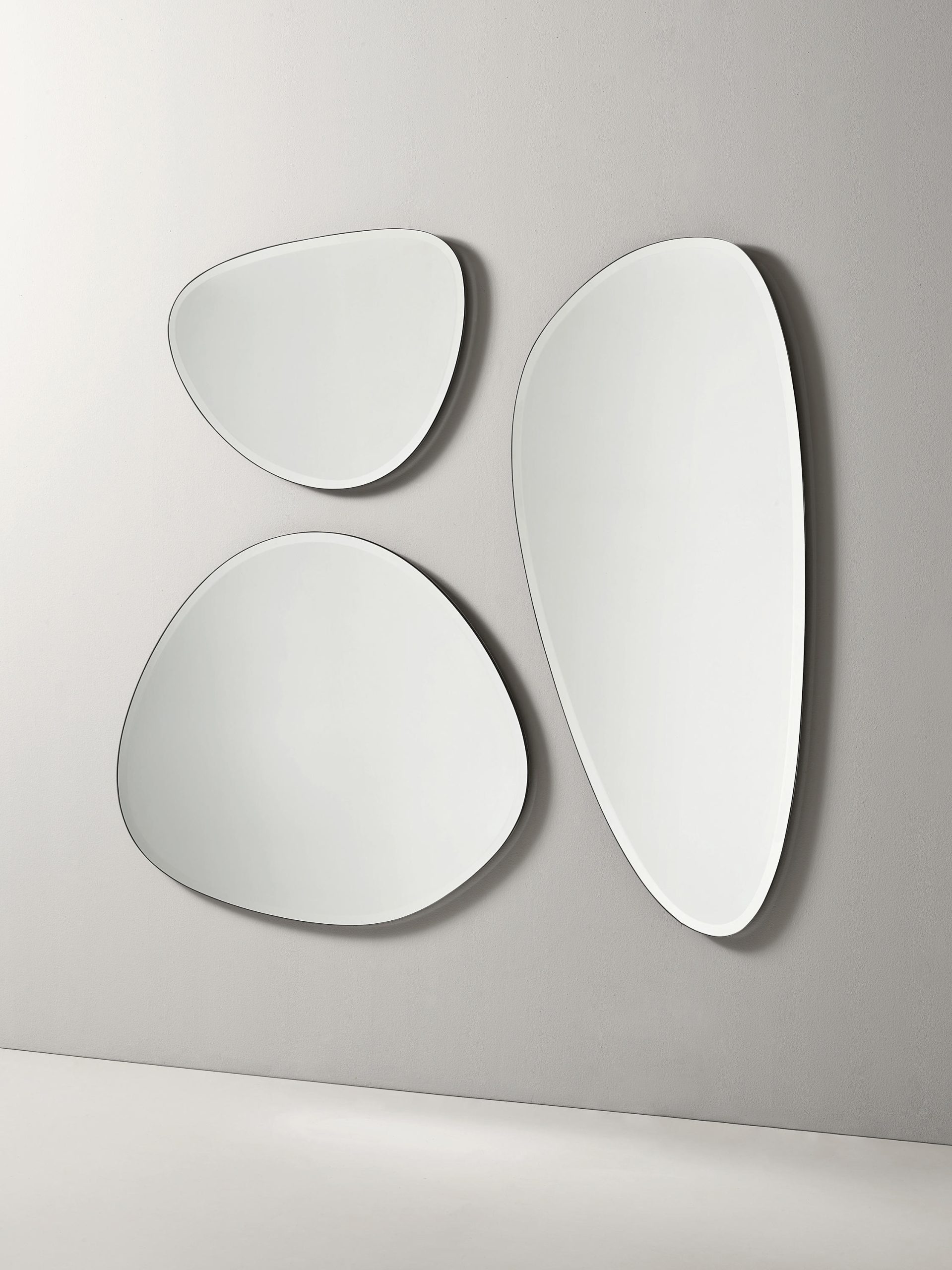 Designed by Nicola Bonriposi together with Midj, the Spot mirror plays with organic shapes to decorate the walls of domestic and collective spaces with originality. An aura of refinement is expressed through clean lines that are suitable for any type of environment. The perimeter of the beveled crystal reflects light from all angles.