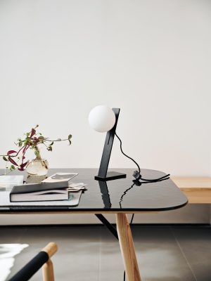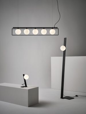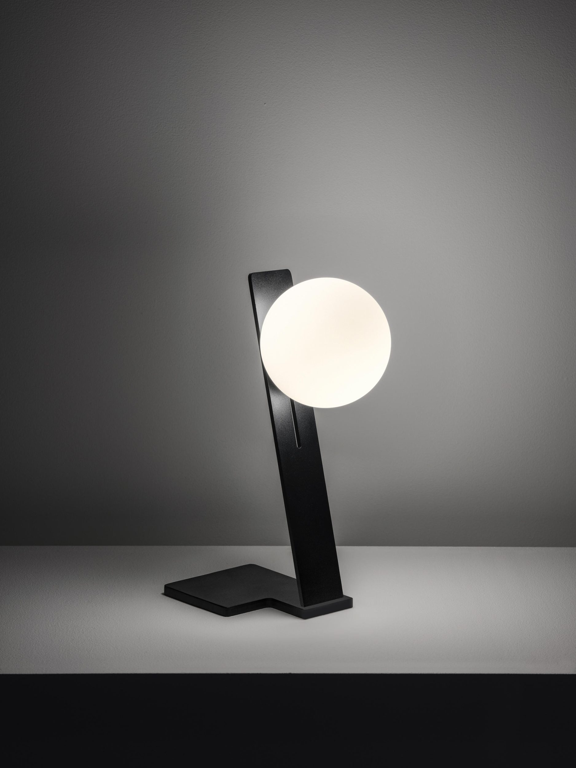 The Suspense Collection for Midj combines classic and contemporary forms, in a new and balanced way. The White opal sphere on the table and floor lamp slides along a steel support, guaranteeing a subtle and directed glow.