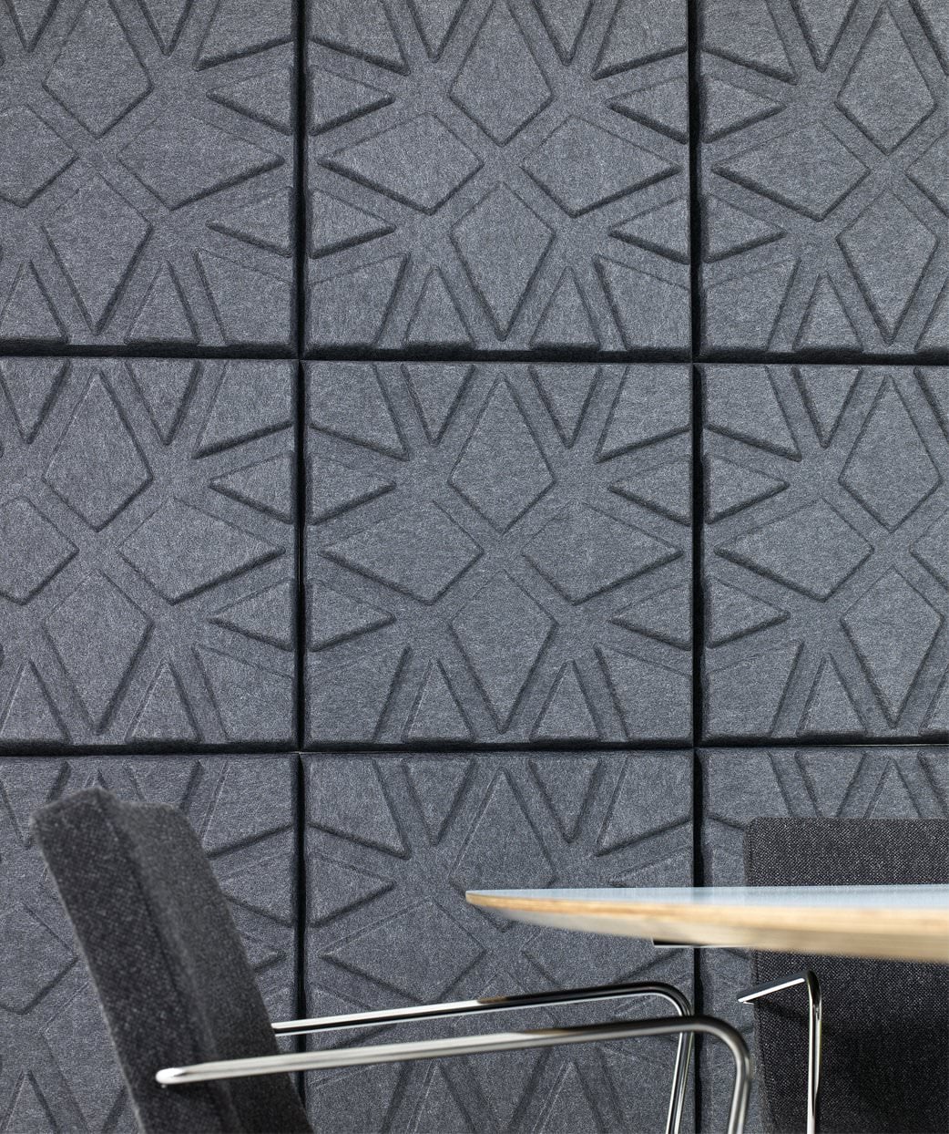 Soundwave® Geo is designed by the well-known furniture designer Ineke Hans. Ineke Hans views Soundwave® Geo as a three-dimensional wall decoration similar to the ones which people have always created around the world. The difference is that Geo has a clear function due to its sound-absorbing purpose.