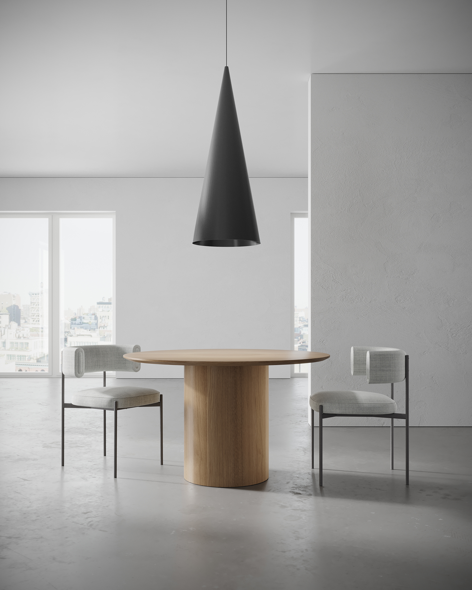 Bruce Timber is a collection of monolithic woodgrain table bases.