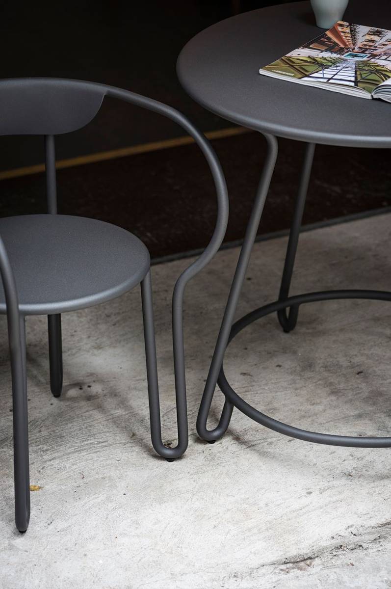 Containing exactly zero sharp angles, its nonchalant outlook and sturdy design are an example of brilliant engineering at the service of originality. A body of aluminum T6 means every piece is ultra light yet heavy-duty, add a layer of trademark powder coating and you have a high performance promise from any piece, on any location, indoors or outdoors.