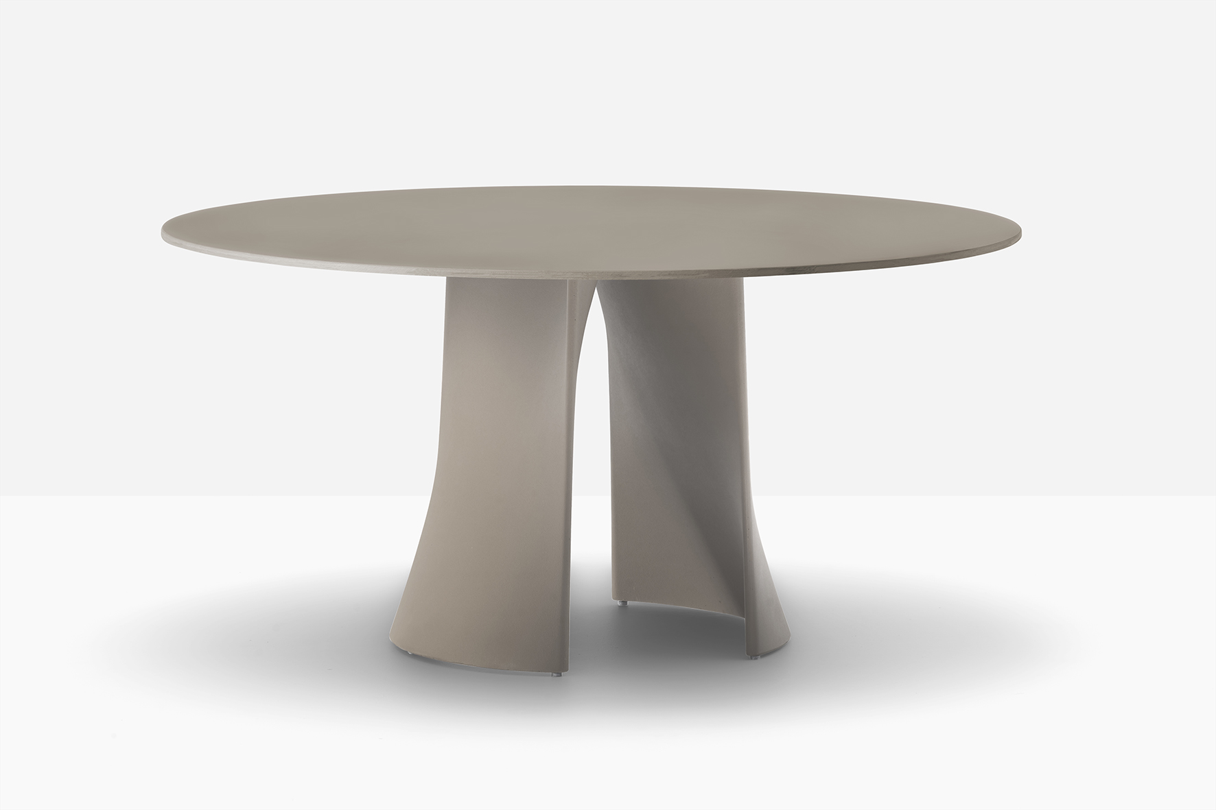 Anemos is an outdoor table defined by simple, architectural lines that highlight the expressive quality of concrete in a fresh, modern style. Its standout feature is the base, formed by two separate concrete shells attached to the tabletop. These shells, resembling a structural membrane, defy the typical perception of concrete’s weight by adopting a flexible, sinuous double curvature.