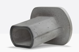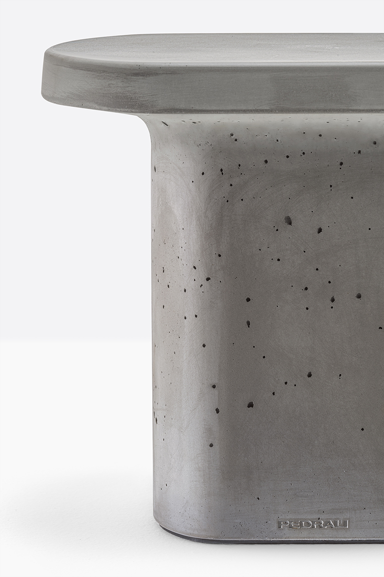 The base includes a nylon foot to protect contact surfaces, and its hollow interior aids mobility. Designed for versatility, Caementum adapts seamlessly to various settings, especially outdoor environments in both public and residential spaces.