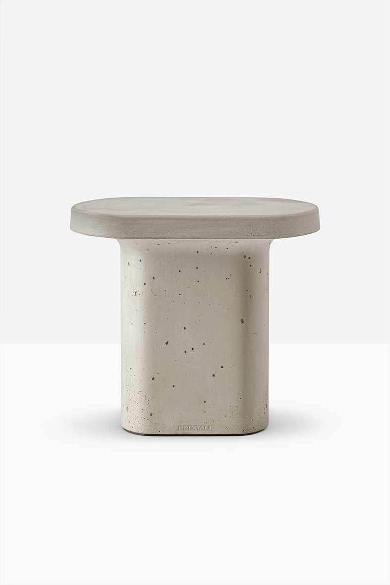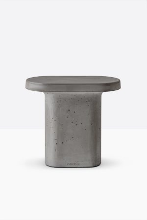 Caementum features a refined, delicate geometry in a single-piece concrete table with a central base. Enhanced with specialised additives, this durable material ensures excellent technical performance, including easy cleaning, high resistance to mechanical stress and weather, and low permeability to liquids and stains.