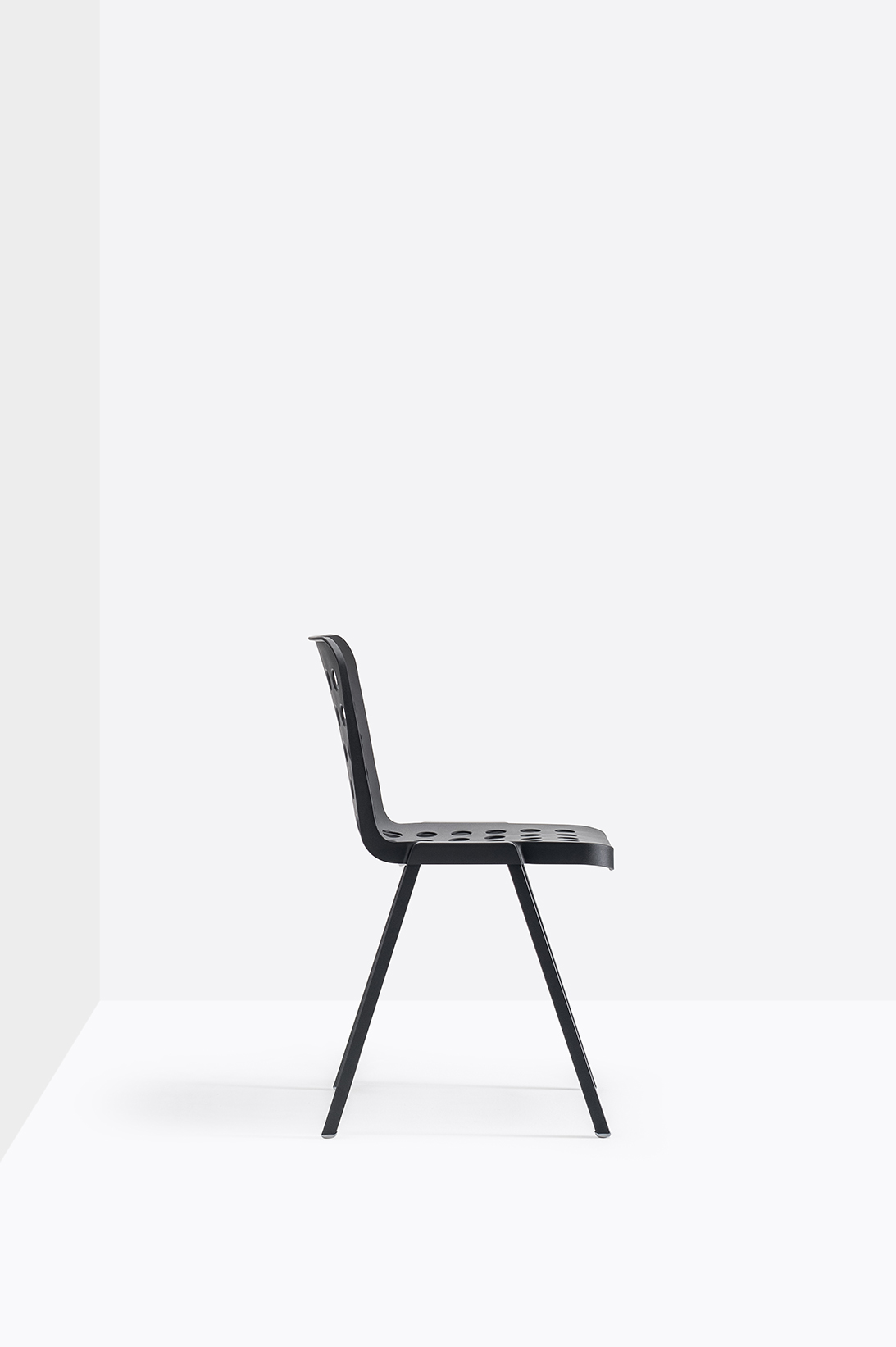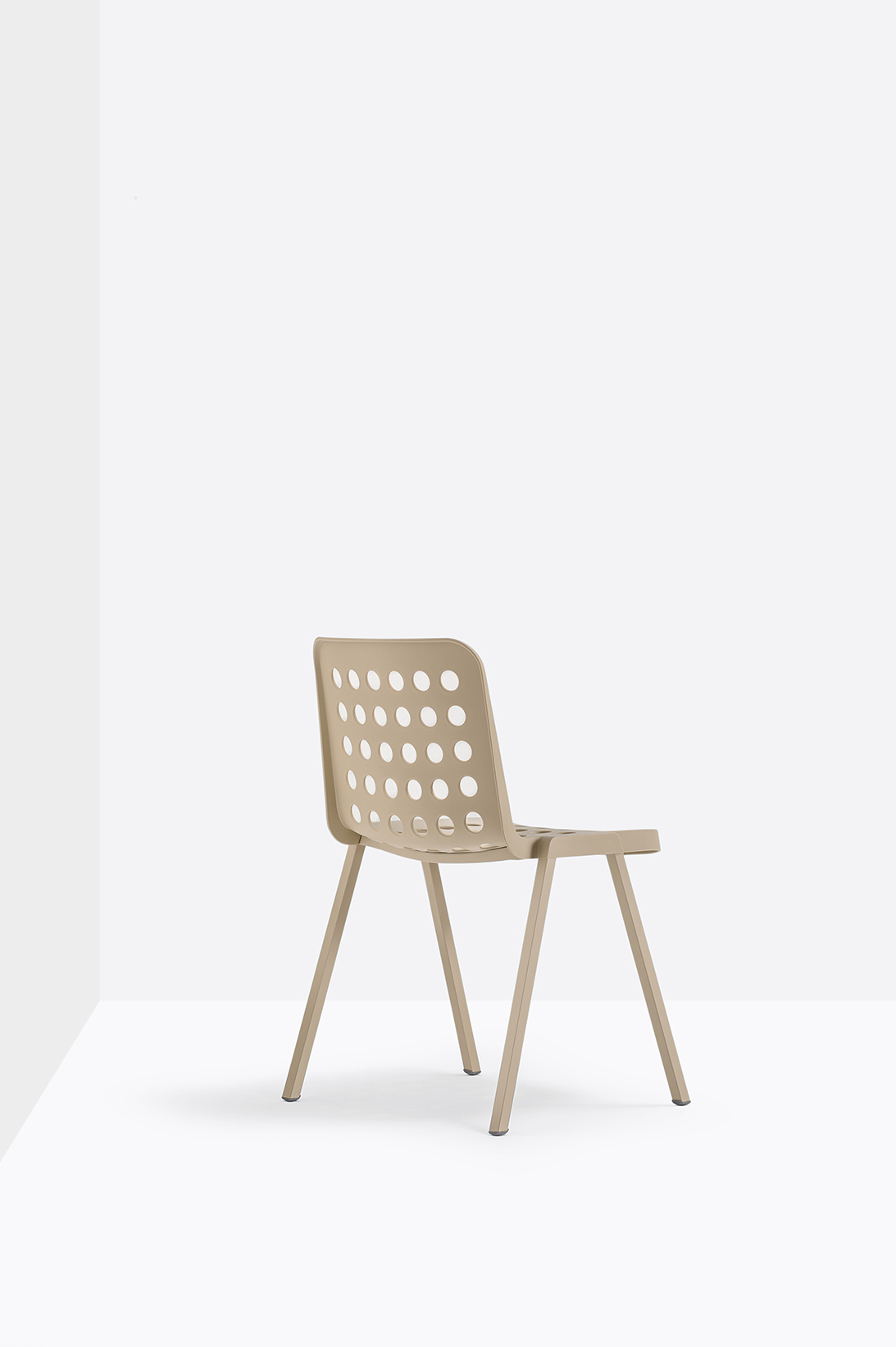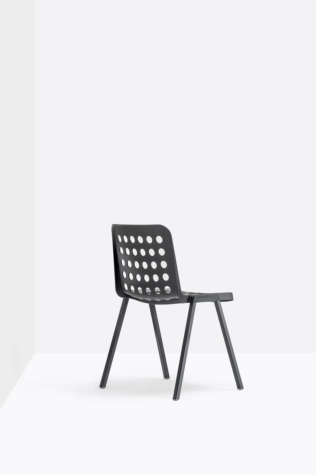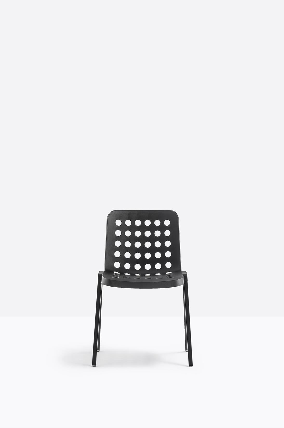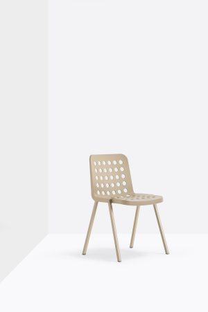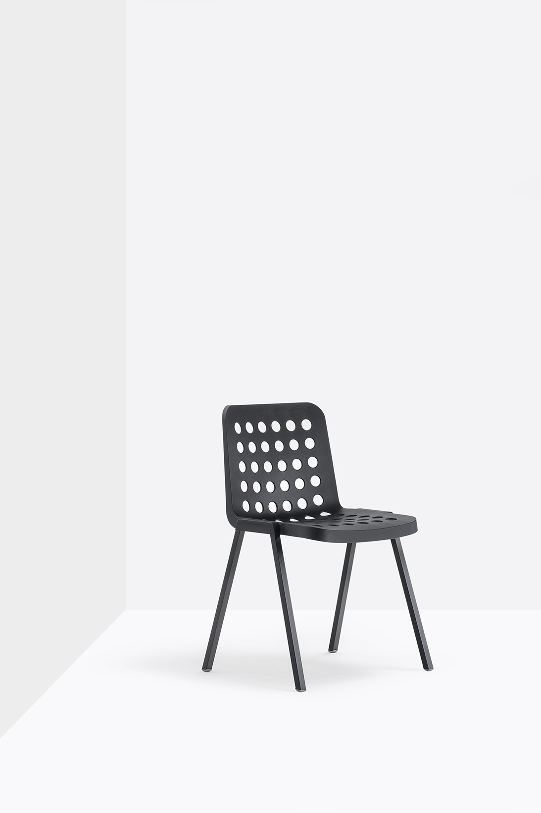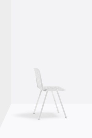 Koi-Booki’s design is defined by a repetition of geometric elements, creating a striking graphic pattern that enhances both its appearance and functionality. The chair features a monocoque seat in injection-moulded polypropylene, paired with a die-cast aluminium frame and extruded aluminium legs for durability and style.