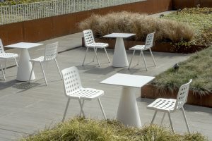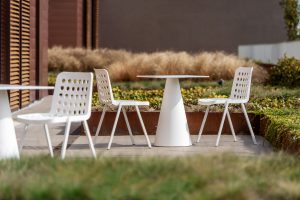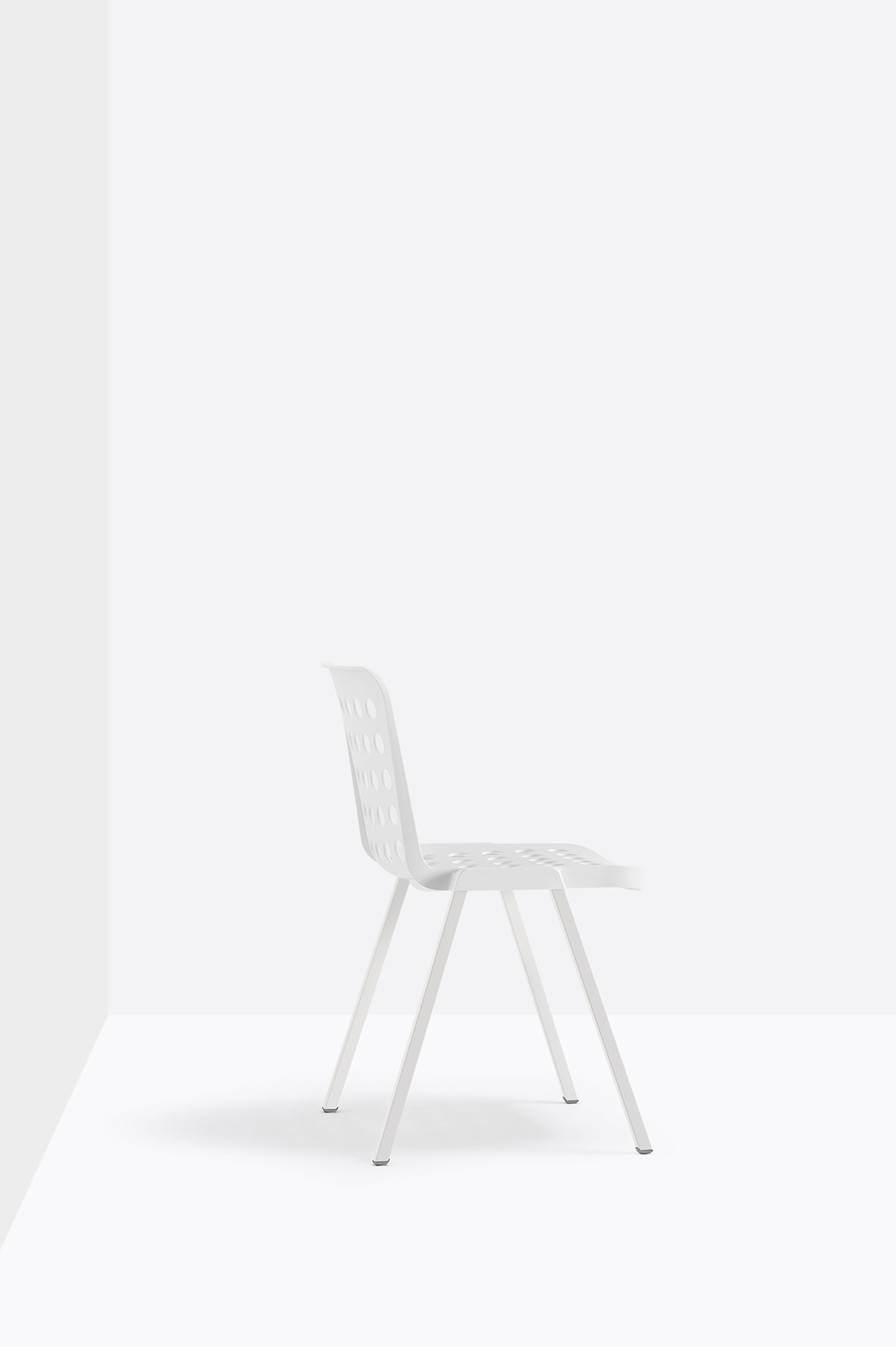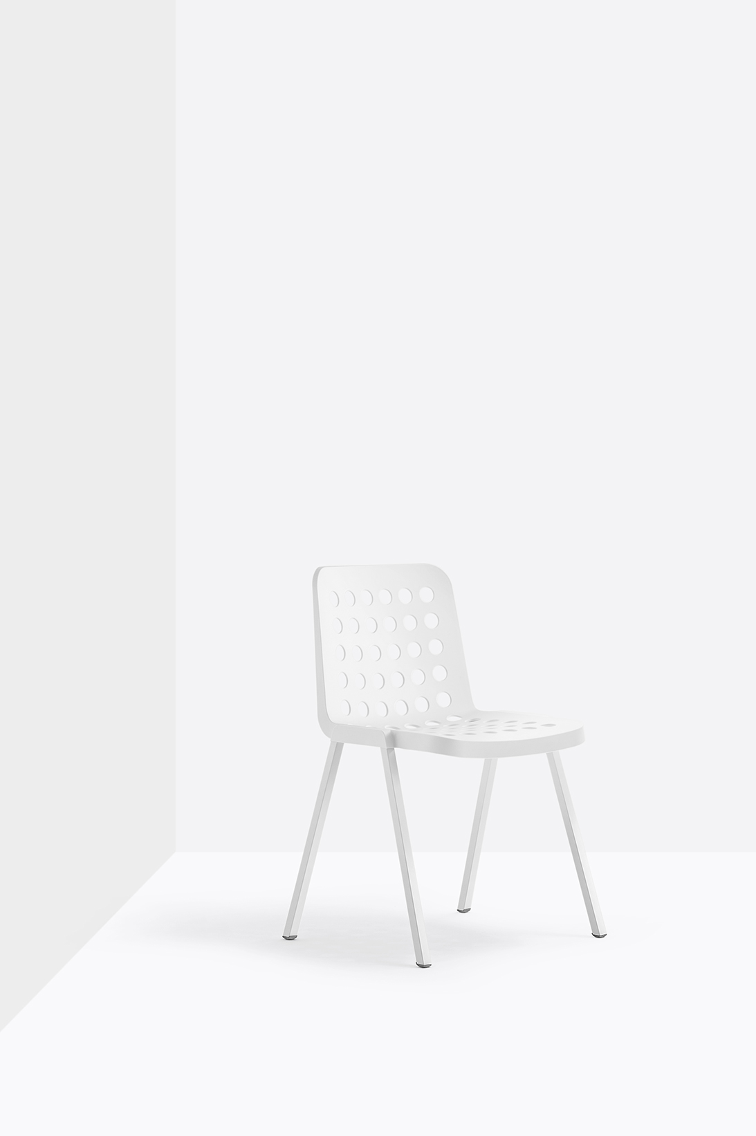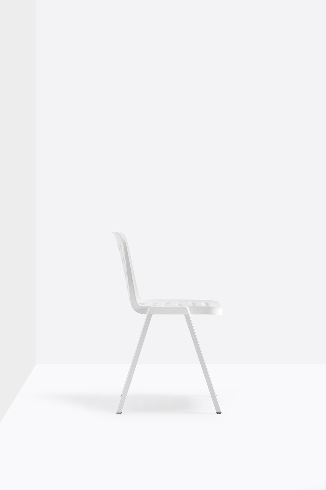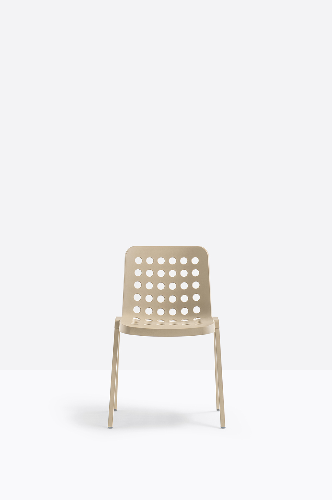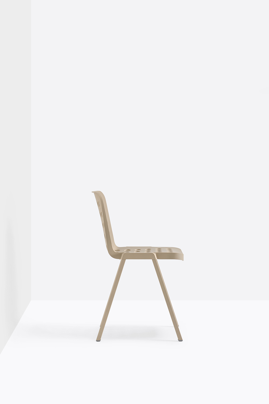 Koi-Booki’s design is defined by a repetition of geometric elements, creating a striking graphic pattern that enhances both its appearance and functionality. The chair features a monocoque seat in injection-moulded polypropylene, paired with a die-cast aluminium frame and extruded aluminium legs for durability and style.