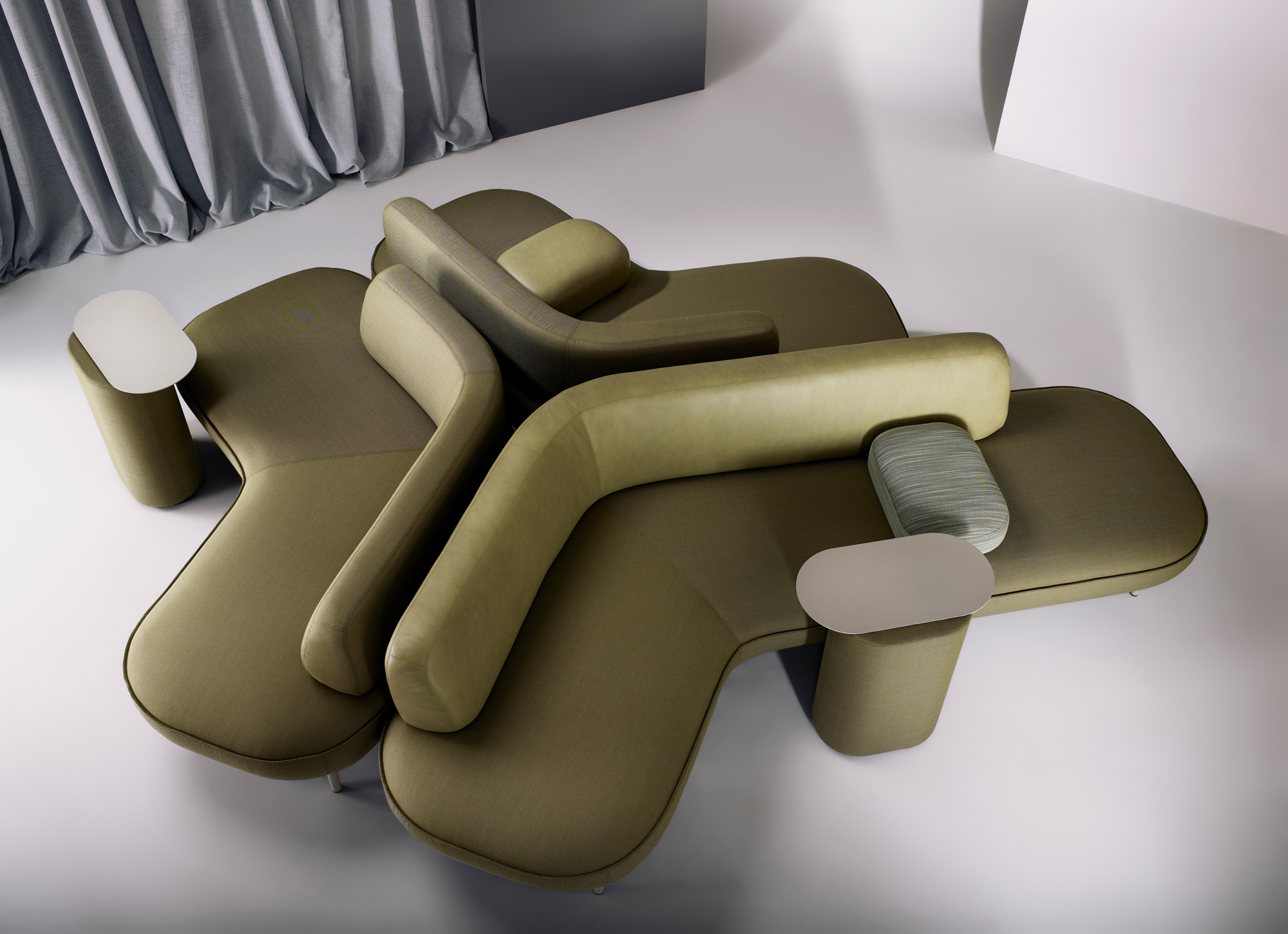The Bayou collection by MR.FRÄG for Swiss Design is a highly configurable ‘work-soft’ meeting system designed to foster relaxed, contemplative environments. Drawing inspiration from the gentle flow of a bayou, the collection comprises seating, tables, ottomans and screens that come together to create harmonious, fluid forms.