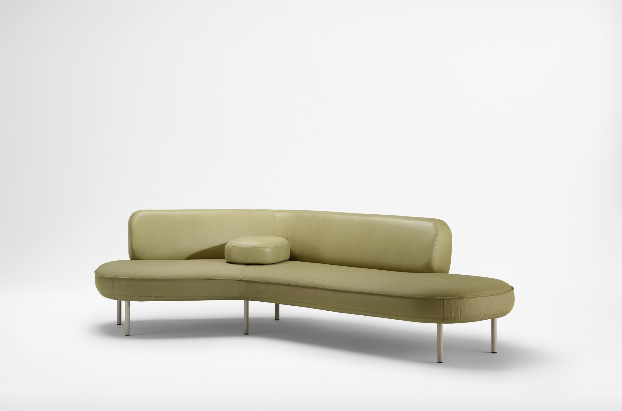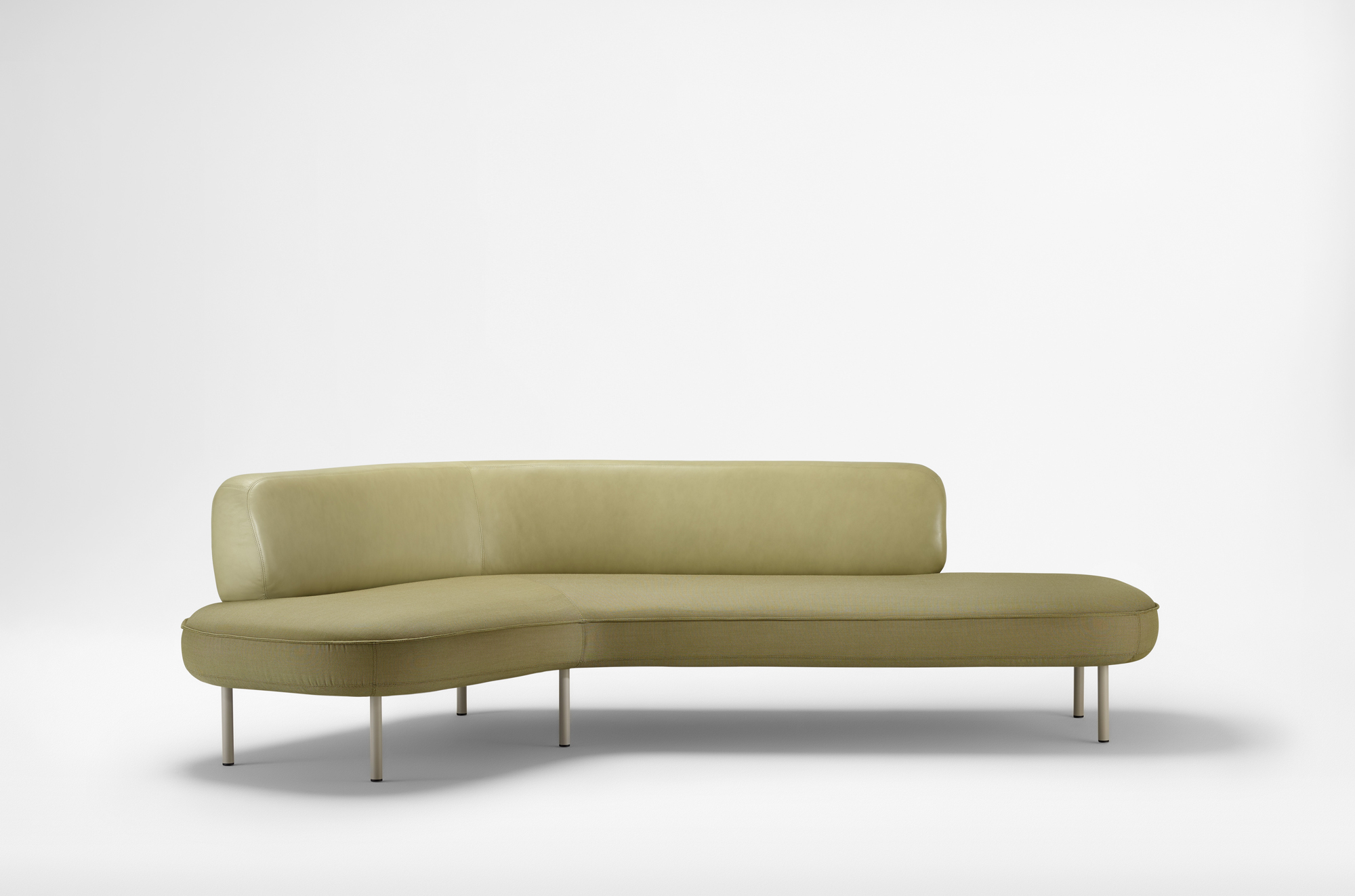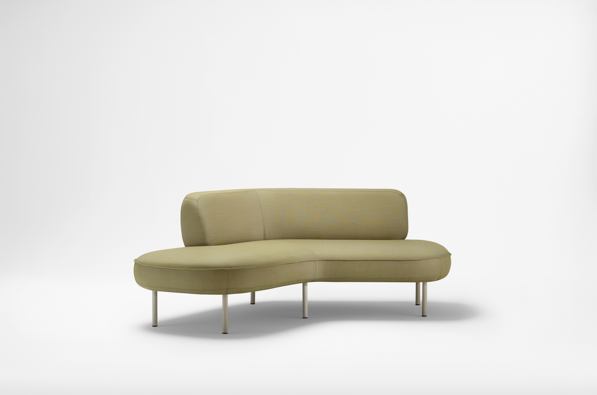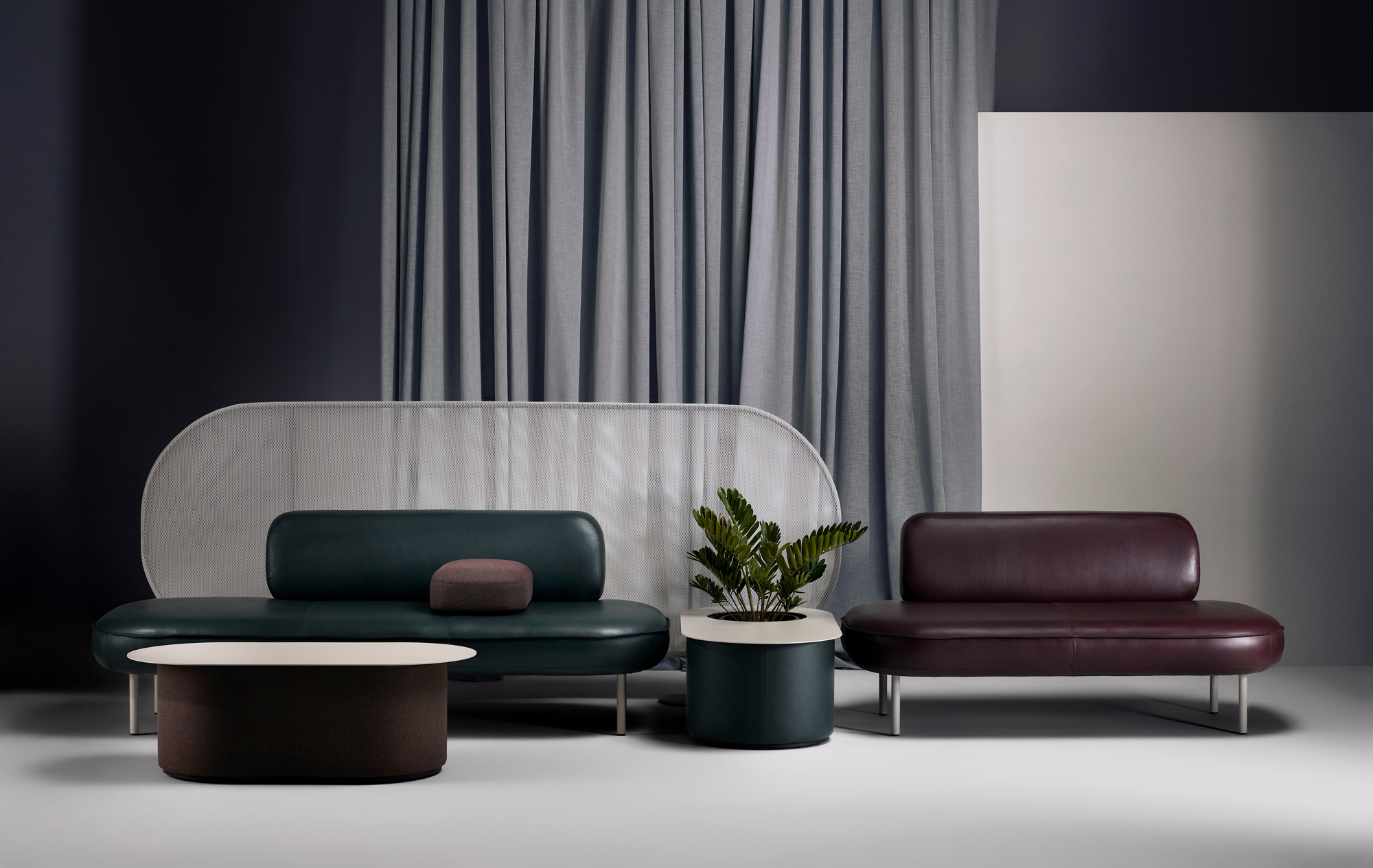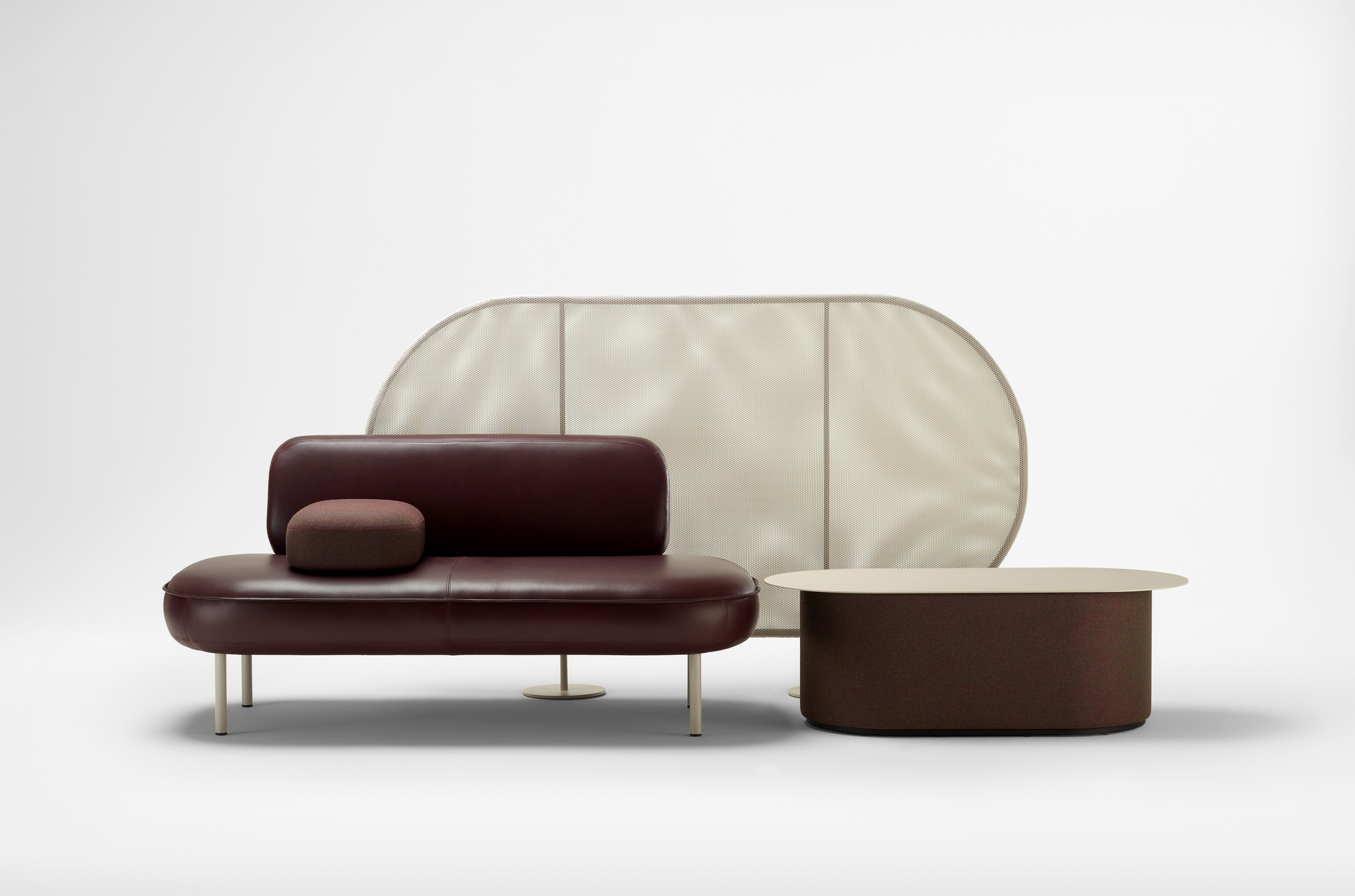 With variable lengths and gentle angles, Bayou defines spaces as an archipelago of interconnected elements. The system includes both short and long segments, as well as 120° angled modules, allowing for versatile configurations. Metal features are powder coated with a warm, textured tone, and freestanding soft diffused screens provide a sense of privacy and seclusion.