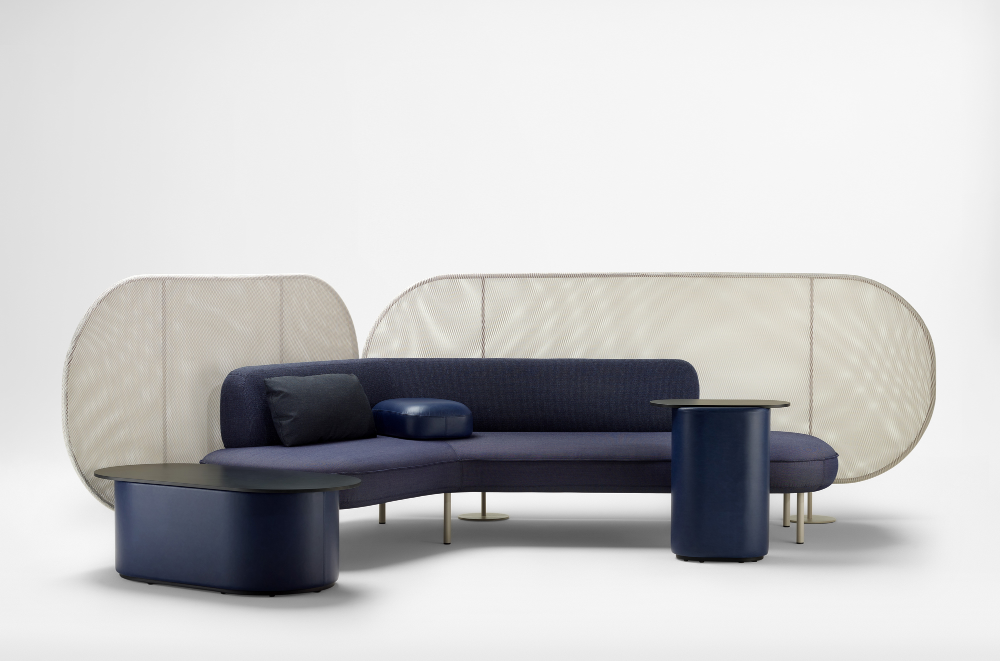With variable lengths and gentle angles, Bayou defines spaces as an archipelago of interconnected elements. The system includes both short and long segments, as well as 120° angled modules, allowing for versatile configurations. Metal features are powder coated with a warm, textured tone, and freestanding soft diffused screens provide a sense of privacy and seclusion.