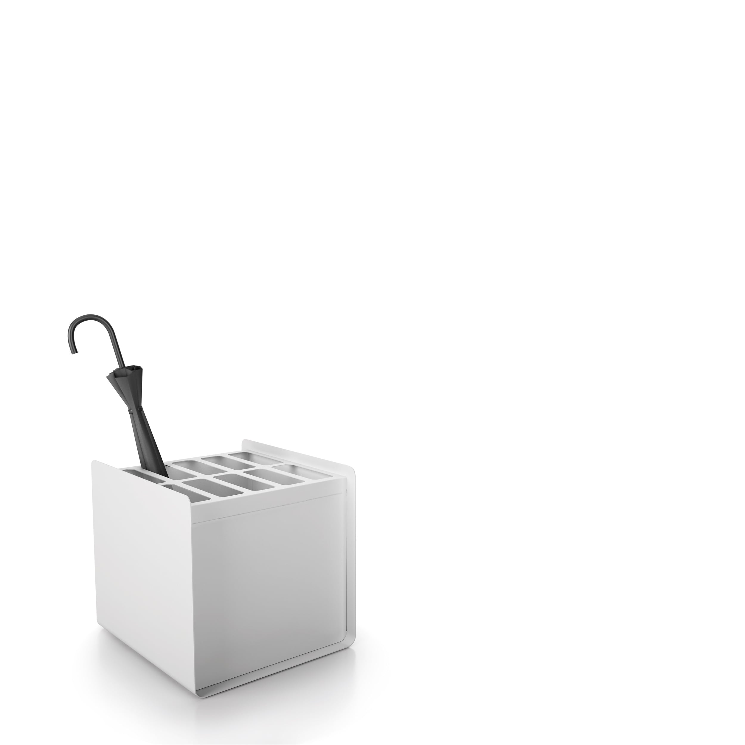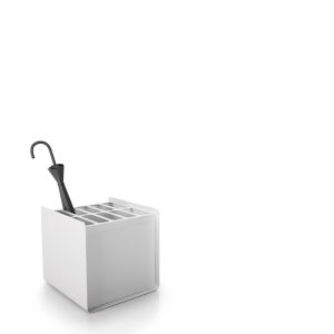 Smart, compact and simple, the Crepe umbrella stand has been incorporated in to the Crepe family to expand its versatile use and possibilities for combination. Manufactured in aluminium and steel, powdercoated to house colour it includes a plate to collect the water and a grid to separate the umbrellas into compartments.