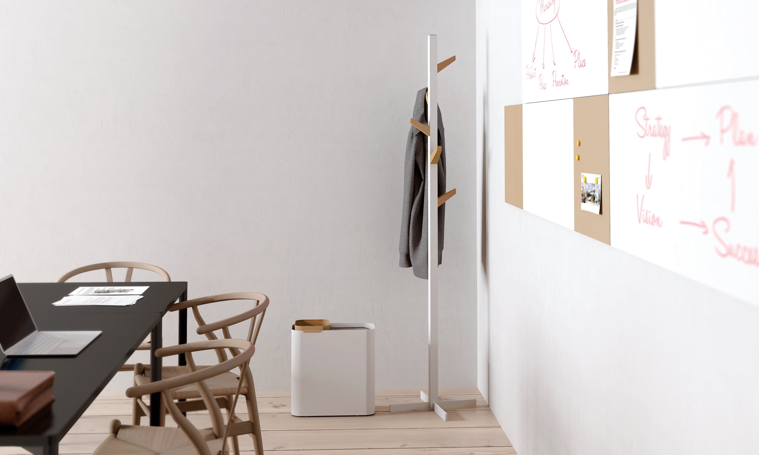 Drop umbrella stand is a clever design that allows for two separate storage holders: one for long umbrellas and the other specifically for compact, folding umbrellas. Made from galvanised steel and powdercoated, colours are able to be mixed or matched to create a colourful visual statement.