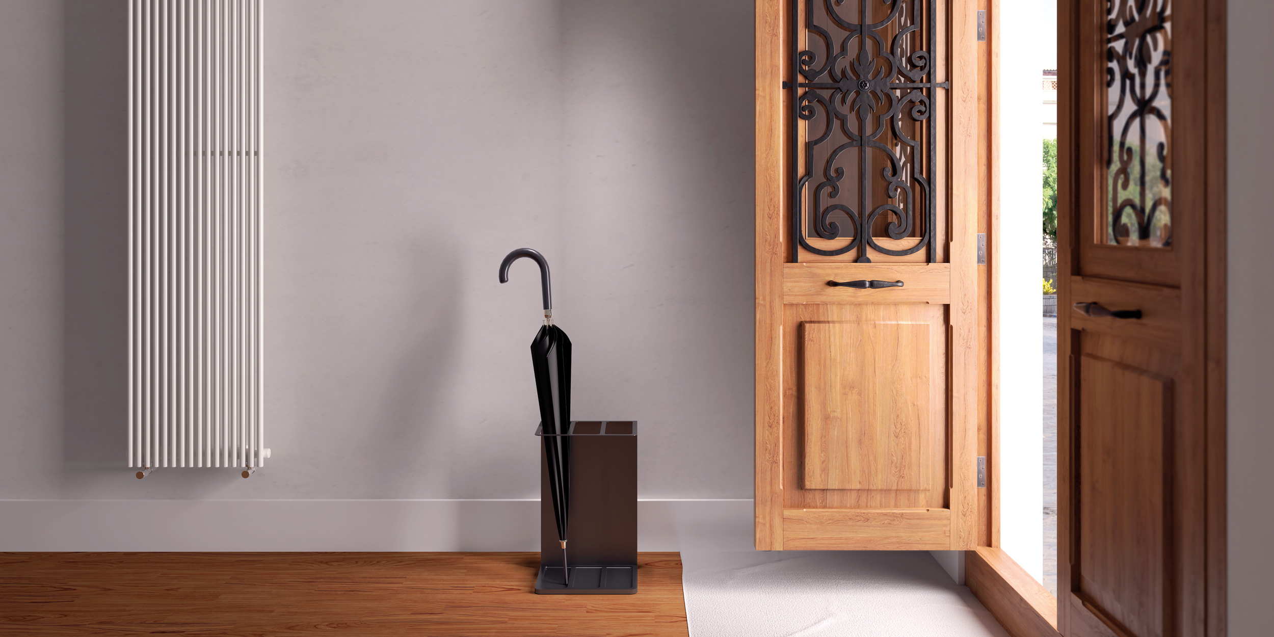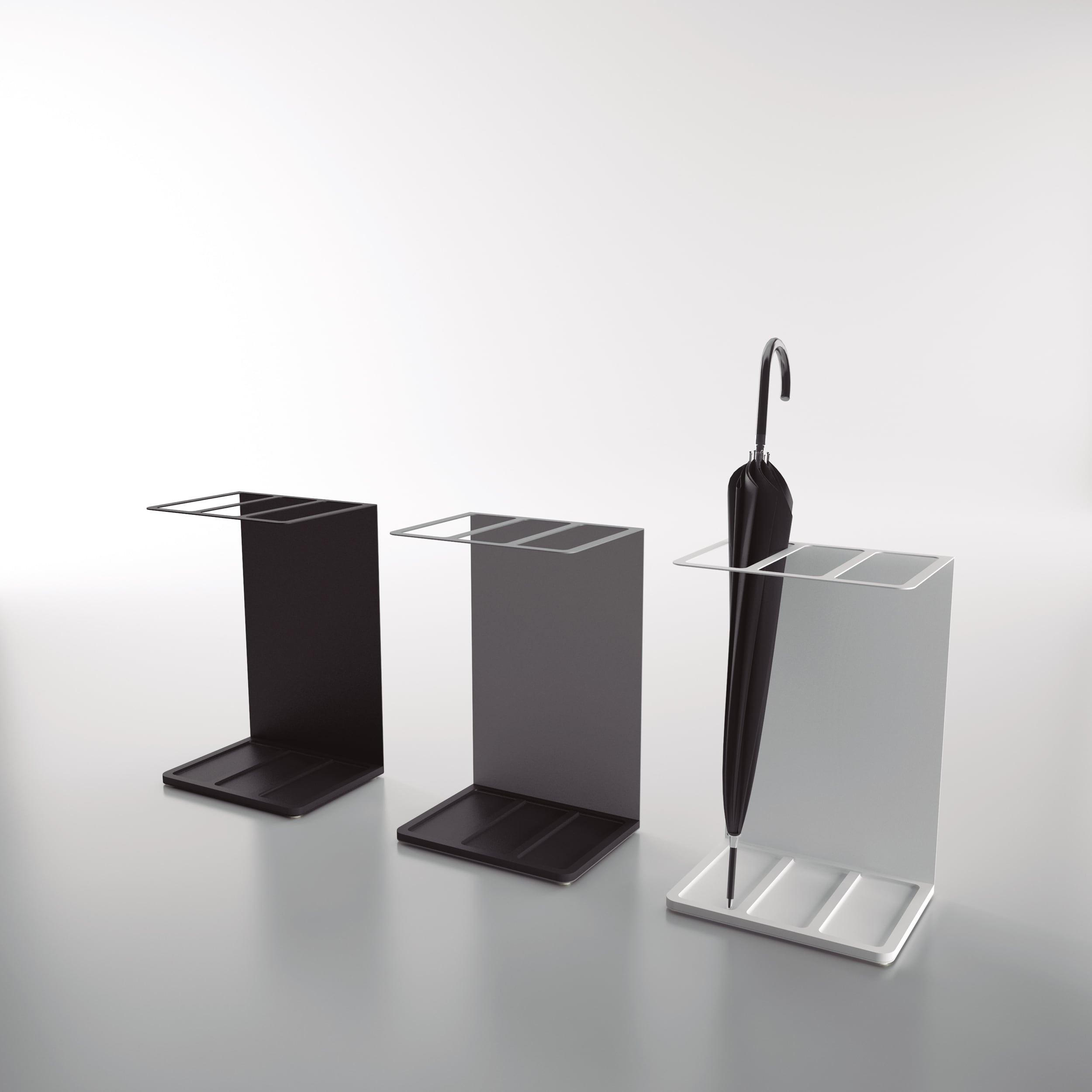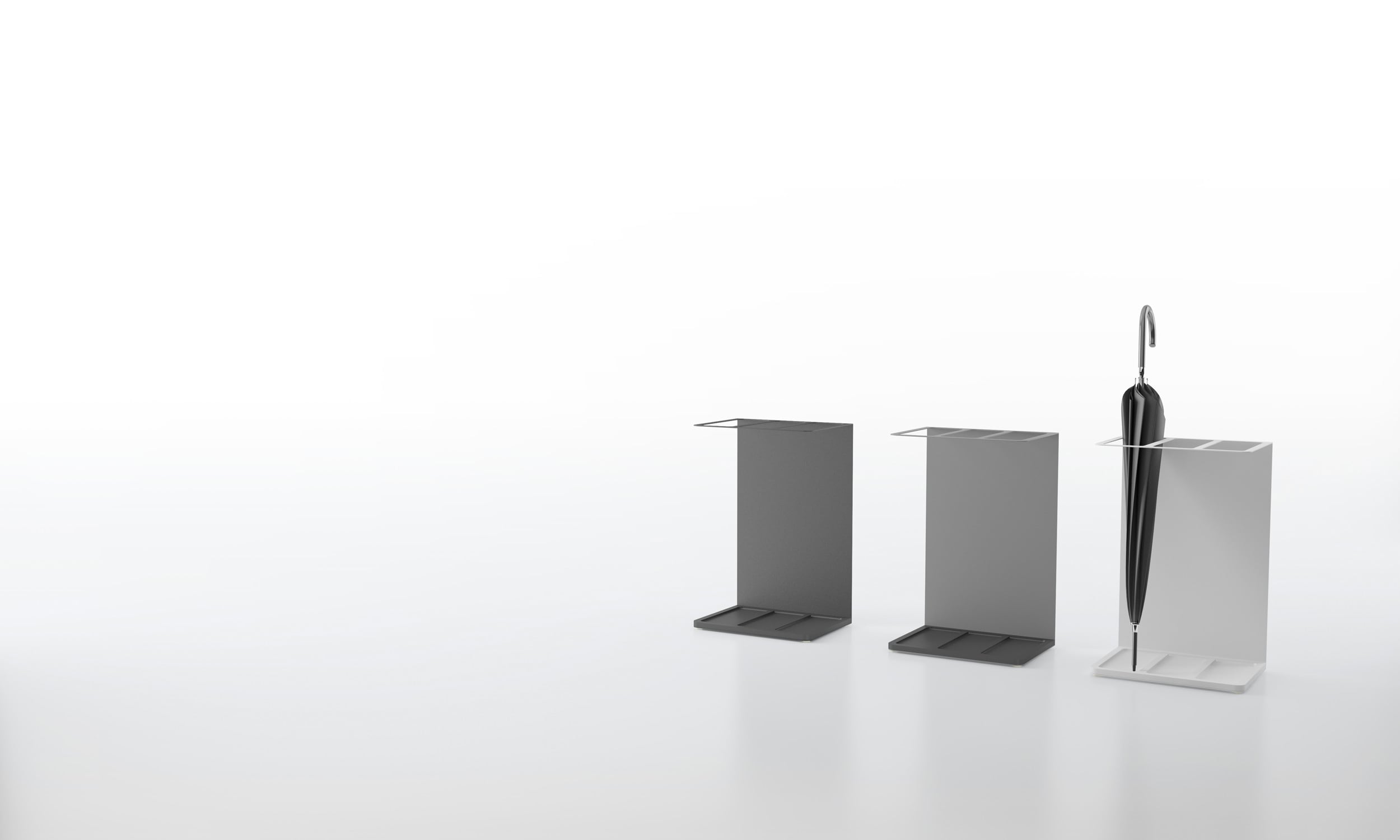 Forrein is a minimalist umbrella stand constructed from 2mm thick galvanised steel sheet, folded into a ĀUĀ. The polyethylene base is quicker drying and is also removable for easy cleaning.