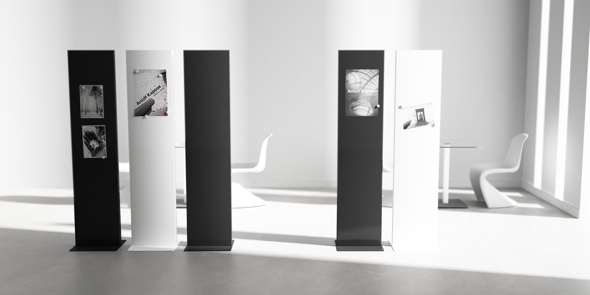 Lit is a free standing vertical panel with dual purposes. Besides functioning as a room divider, magnetic elements may be added to enable use as a notice panel.