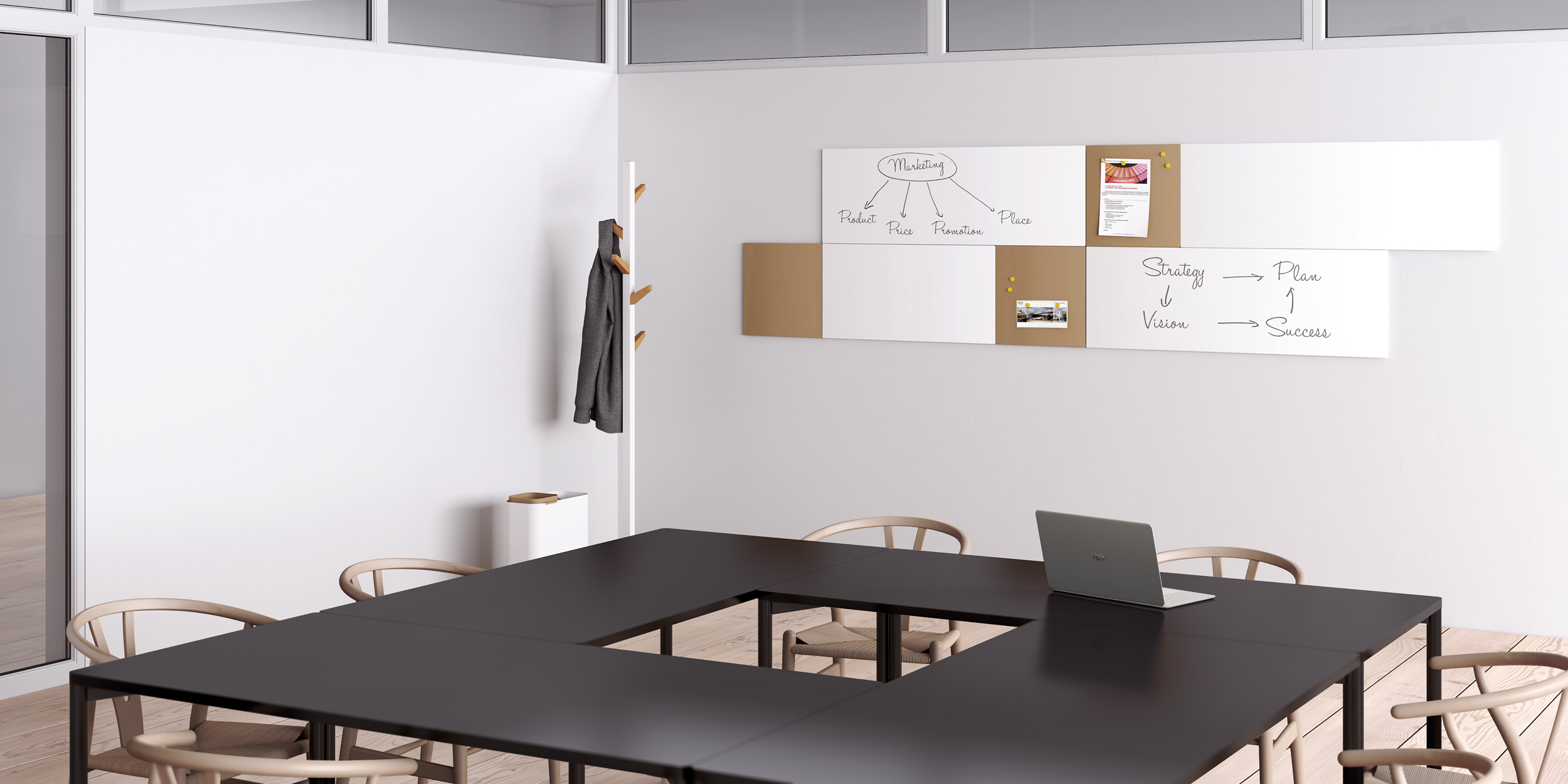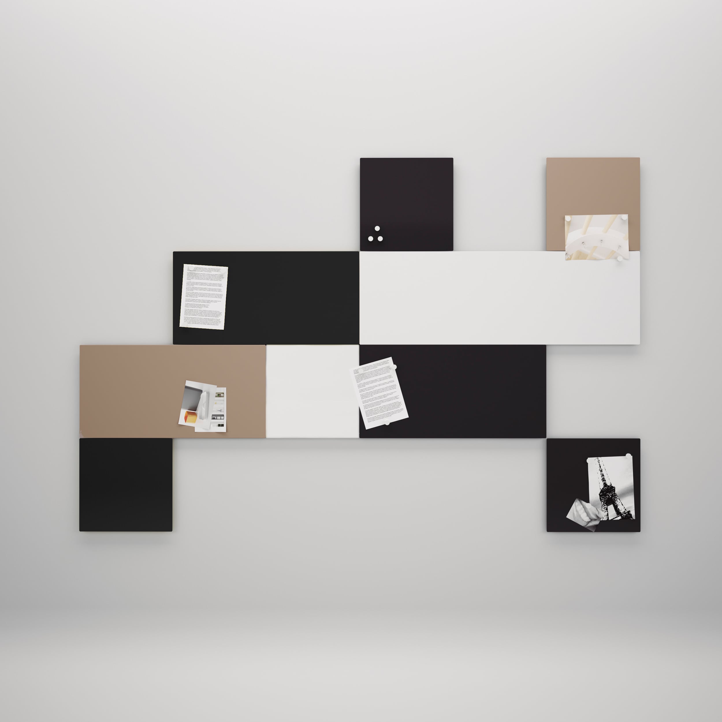 Metallic notice panels of different sizes and colours that create original wall compositions in many spaces: informative points, offices, receptions, childrenês rooms, to name a few. Available in white gloss for writing on or with adaptable magnetic elements.