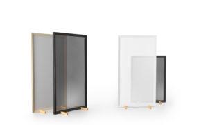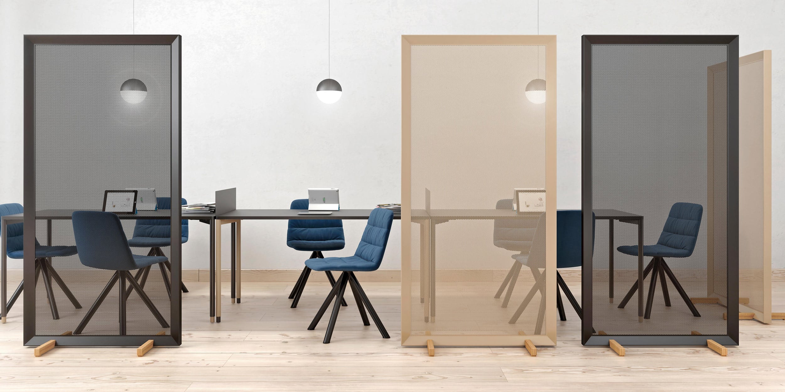An elegant and minimalist free standing room divider, Parban is composed from a triangular section frame which houses an aluminium mesh panel. Strong and sturdy materials ensure stability and the warmth of the Oak feet add a softness to the overall look.
