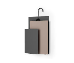 The base and the centre panel can be painted in a contrasting colour. Sou is also available as free standing or wall mounted.