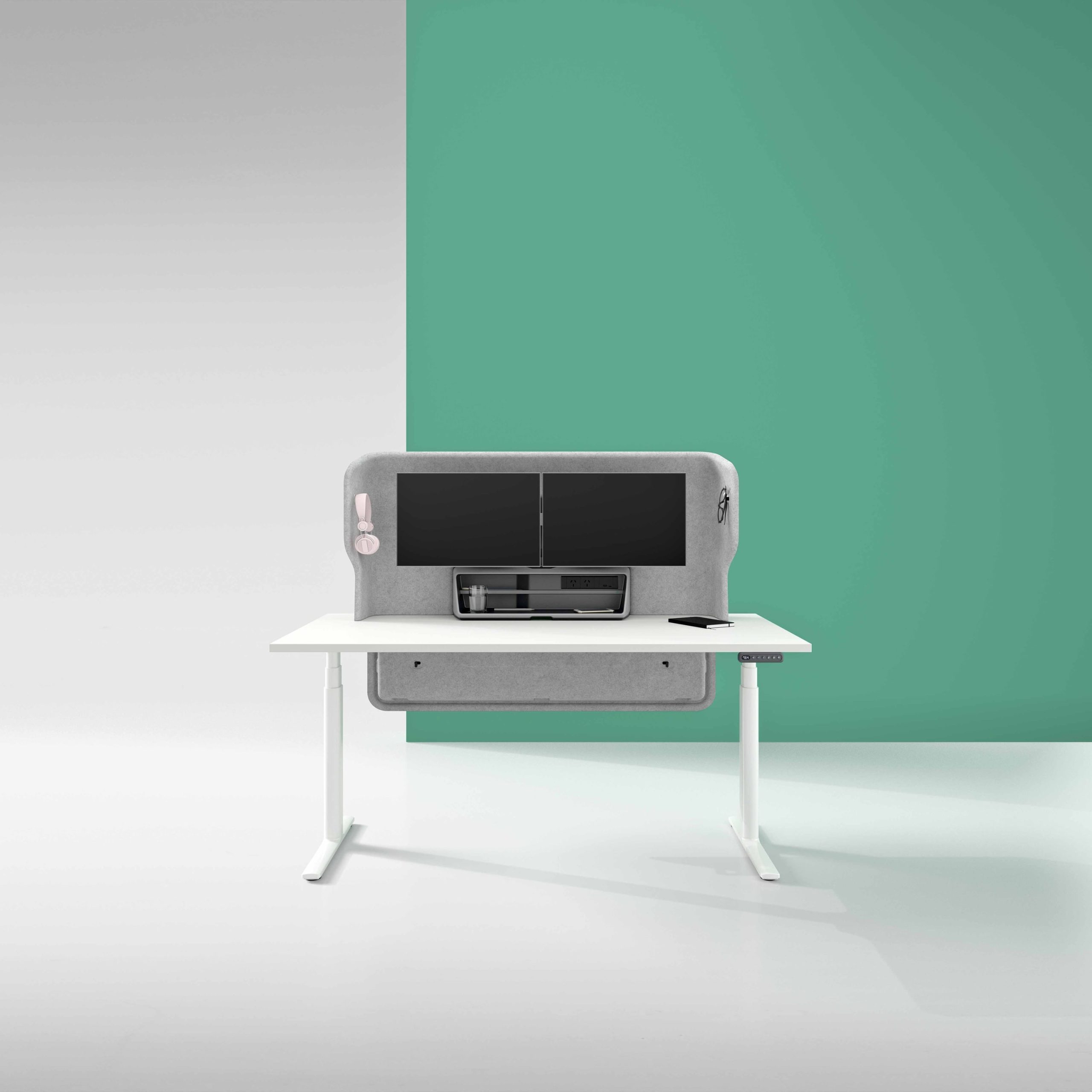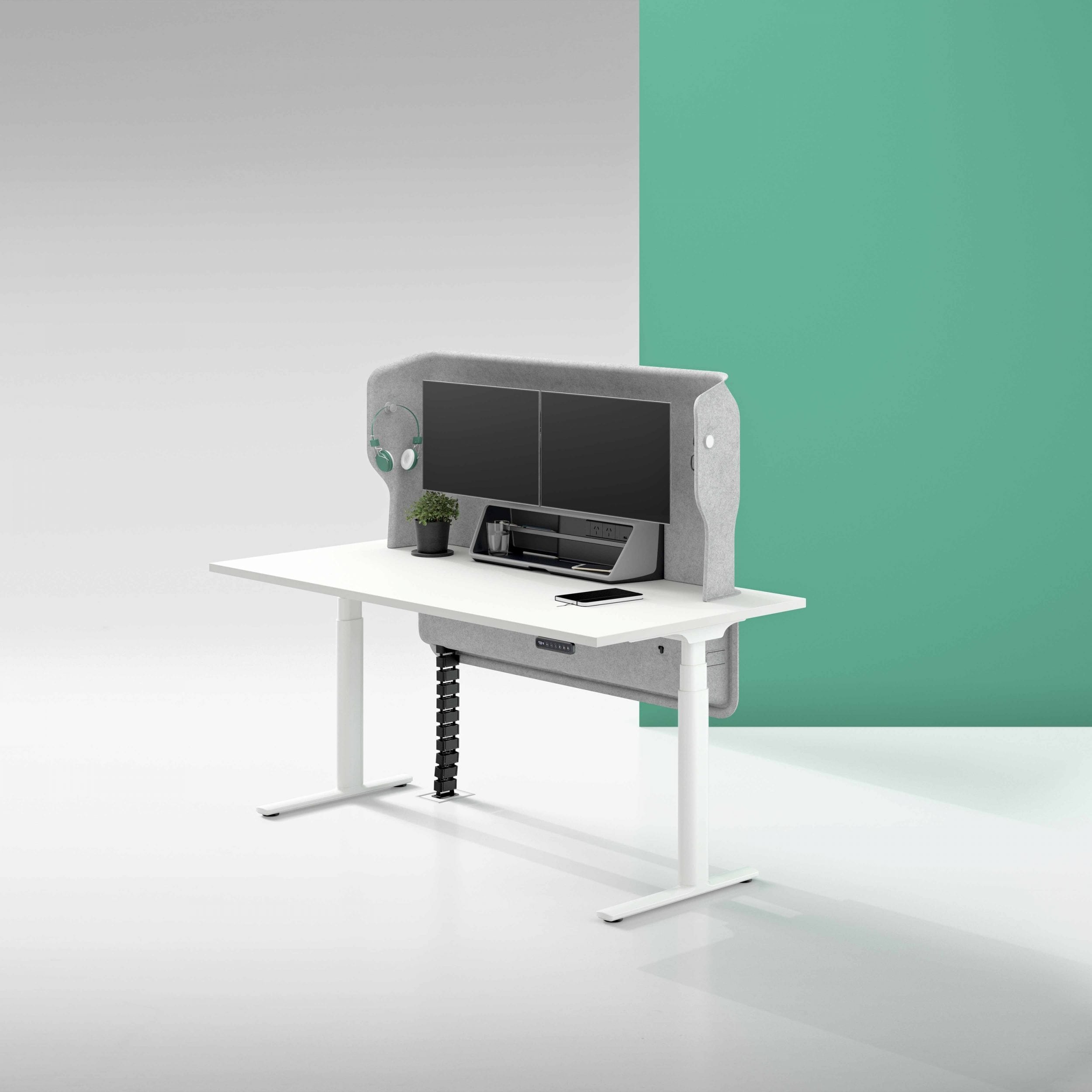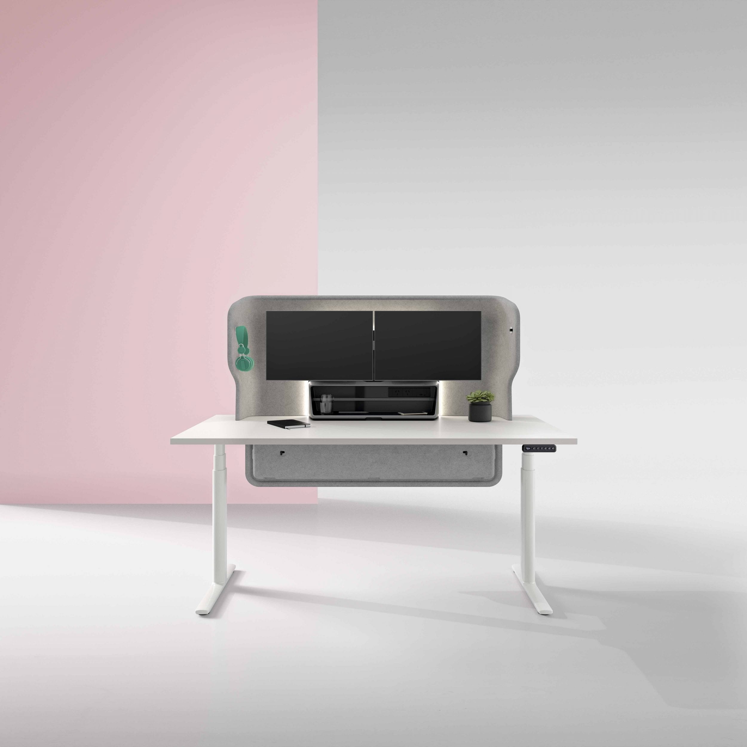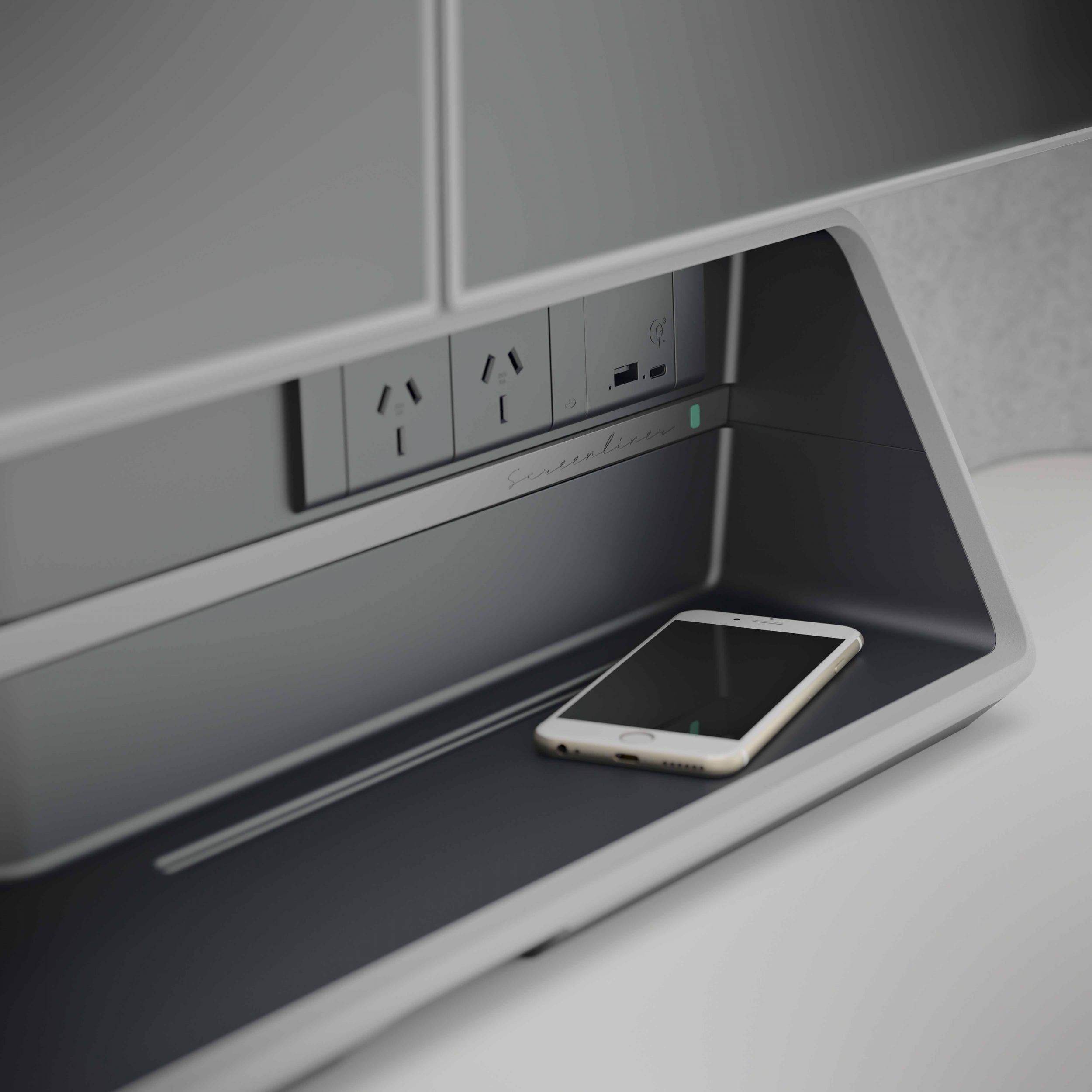 Introducing Screenliner, a unique acoustic desk screen which creates a personal cabin space within the workstation. With features including integrated storage for phones, glasses, headsets and other personal effects, Screenliner provides built-in power and inductive charging facilities as well as concealed power management and ambient lighting.